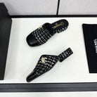 CC FLAT MULE IN BLACK MIX WHITE WOOL TWEED AND CALFSKIN