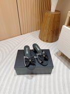 CC HIGH HEEL BLACK SATIN WITH WHITE RHINESTONES