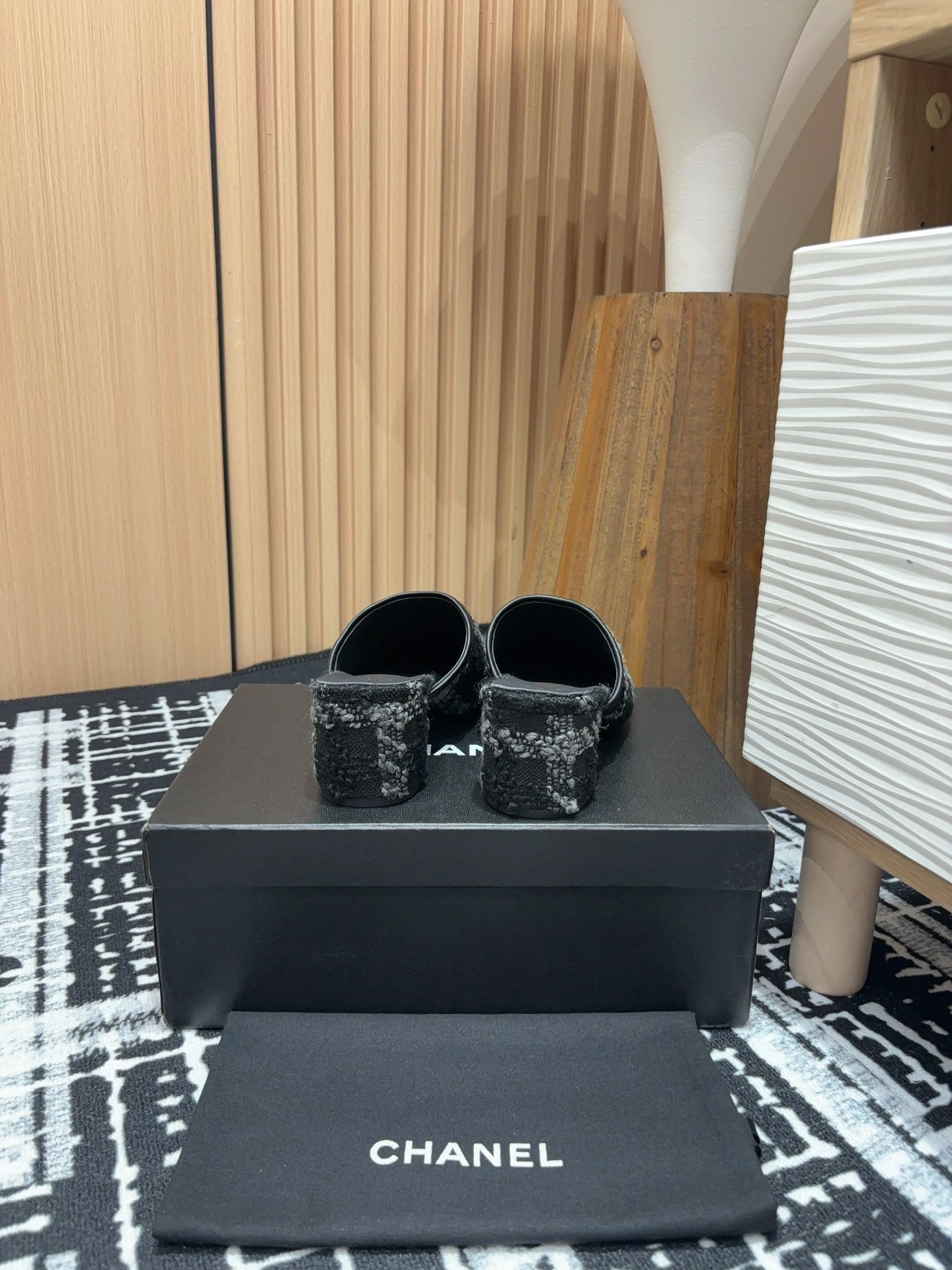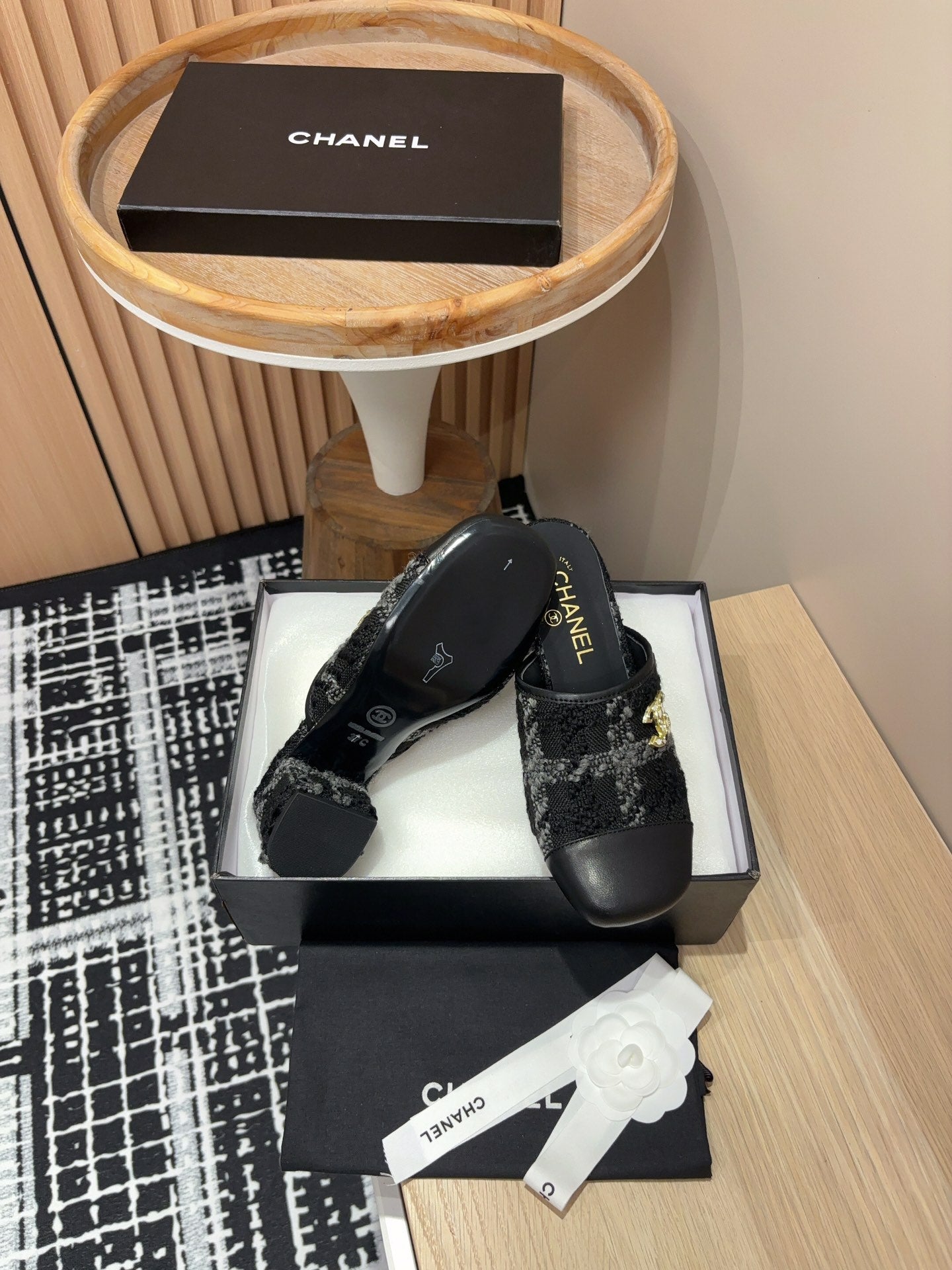 CC Mule 60mm In Black Wool Tweed And Lambskin Gold Hardware