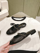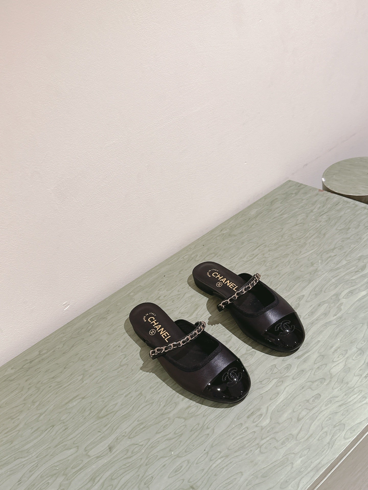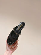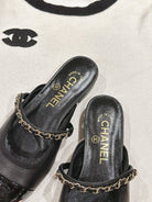 cc mule leather chain black calfskin patent calfskin