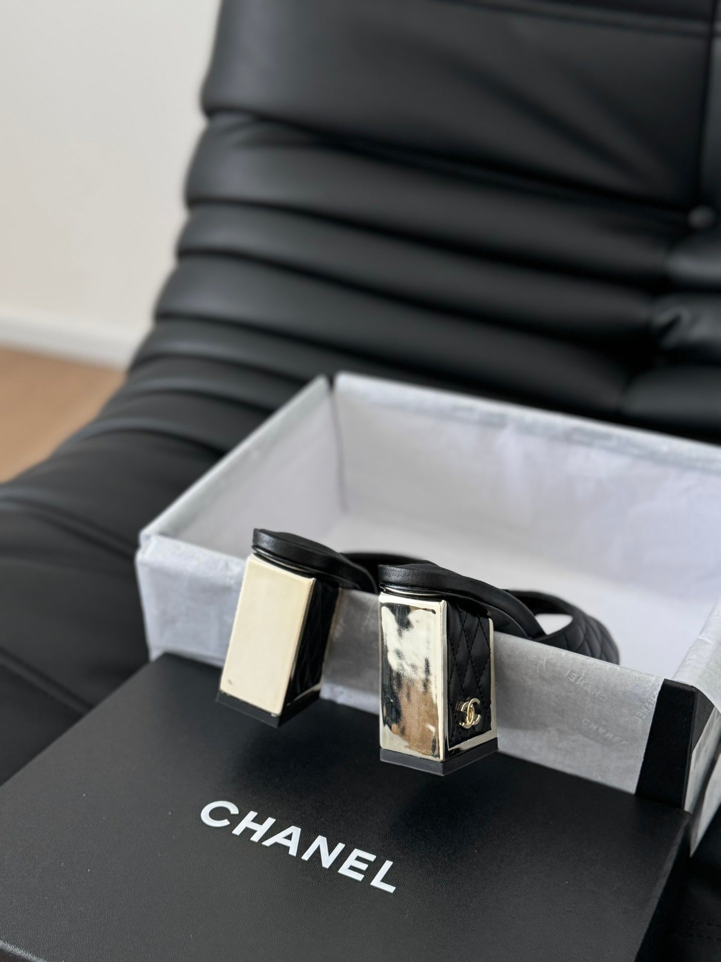 cc sandal 70 black quilted calfskin
