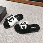 CC SLIPPERS IN BLACK MIX WHITE FLEECE