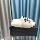 CC Slippers White Black Text Fleece Wool