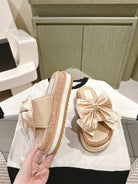 CC SLIPPERS WITH SILK BOW IN BEIGE ALMOND COWHIDE