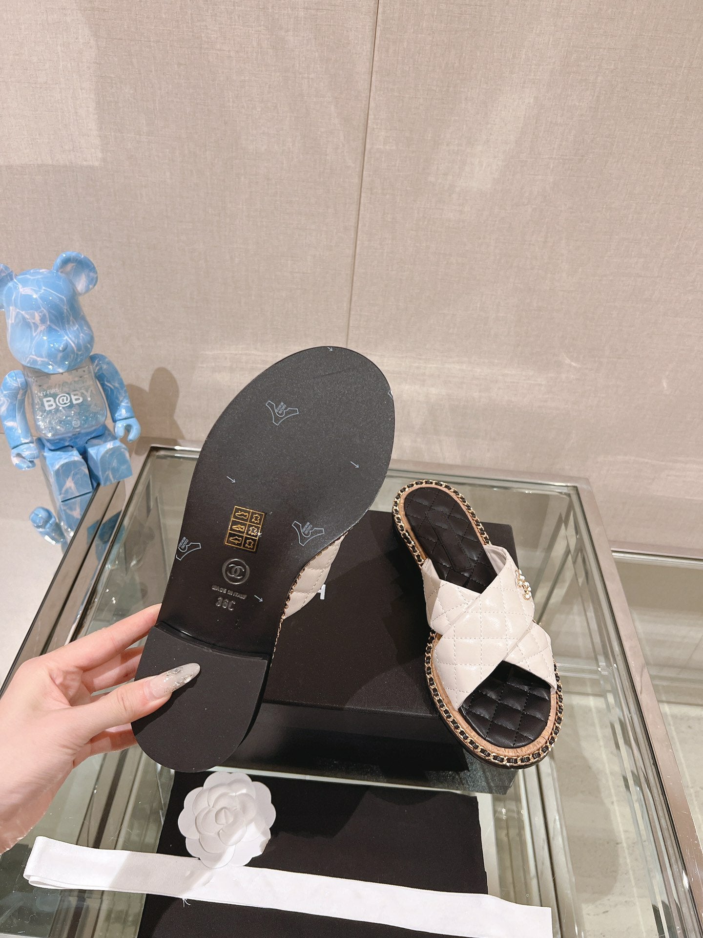 cross slippers 30 white black quilted lambskin