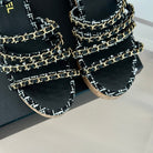 cc leather chain slingback sandal black calfskin