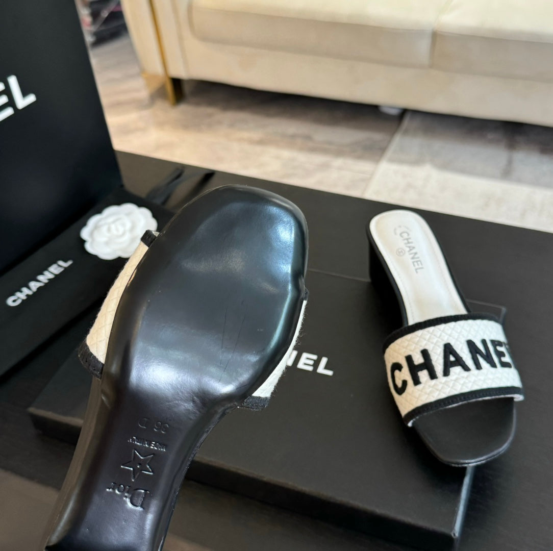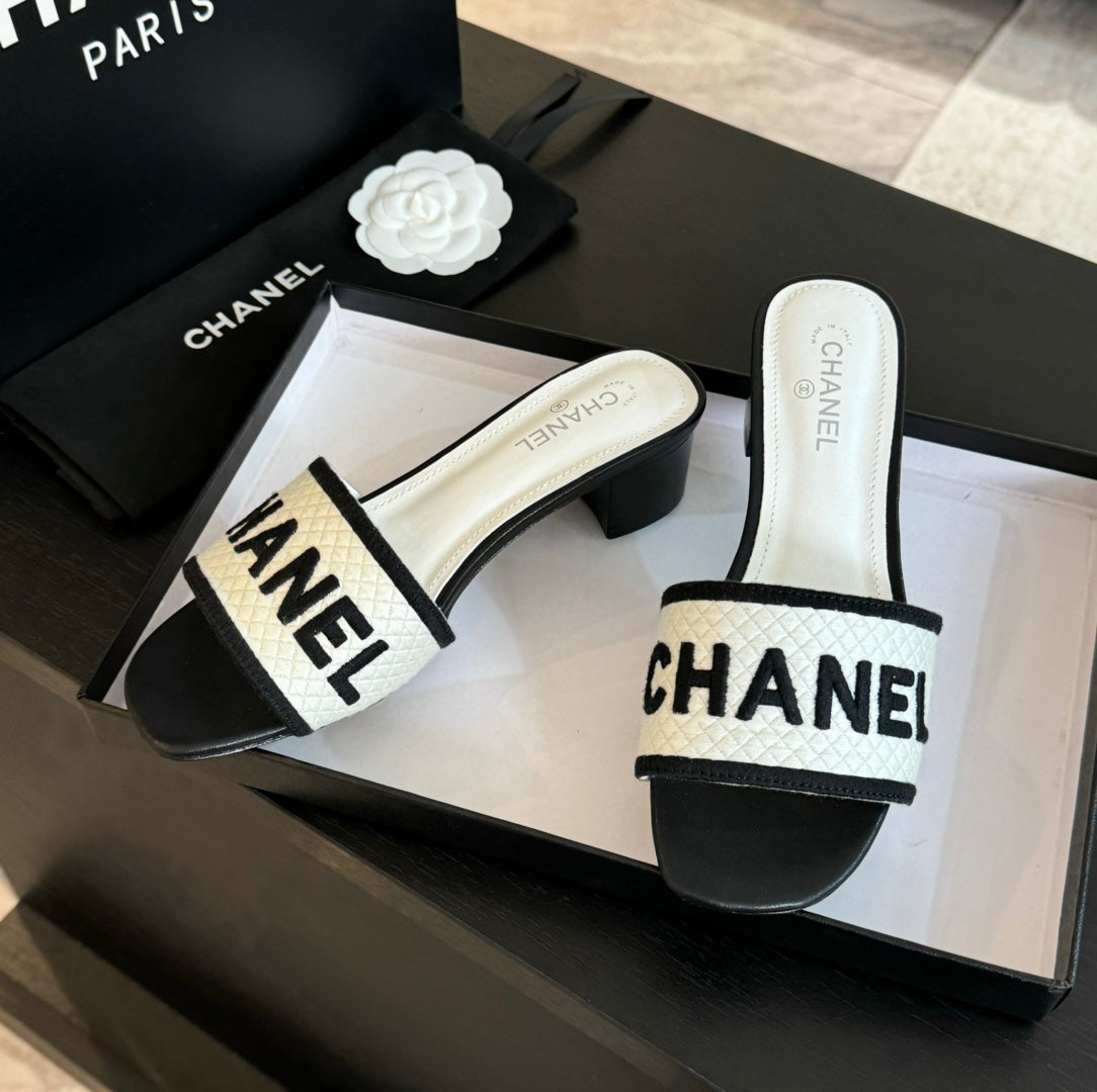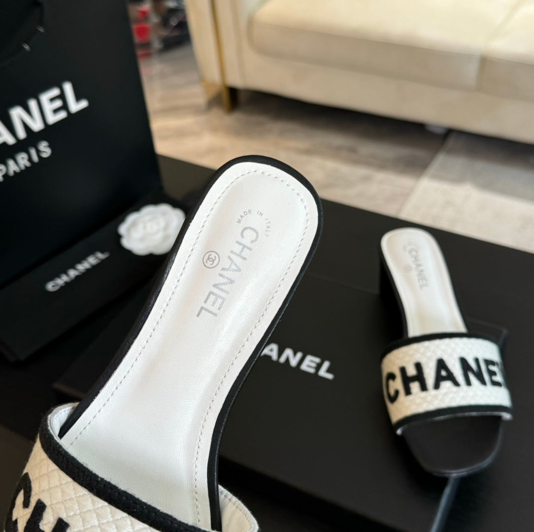 mule sandal 45 white black fabric embroidery