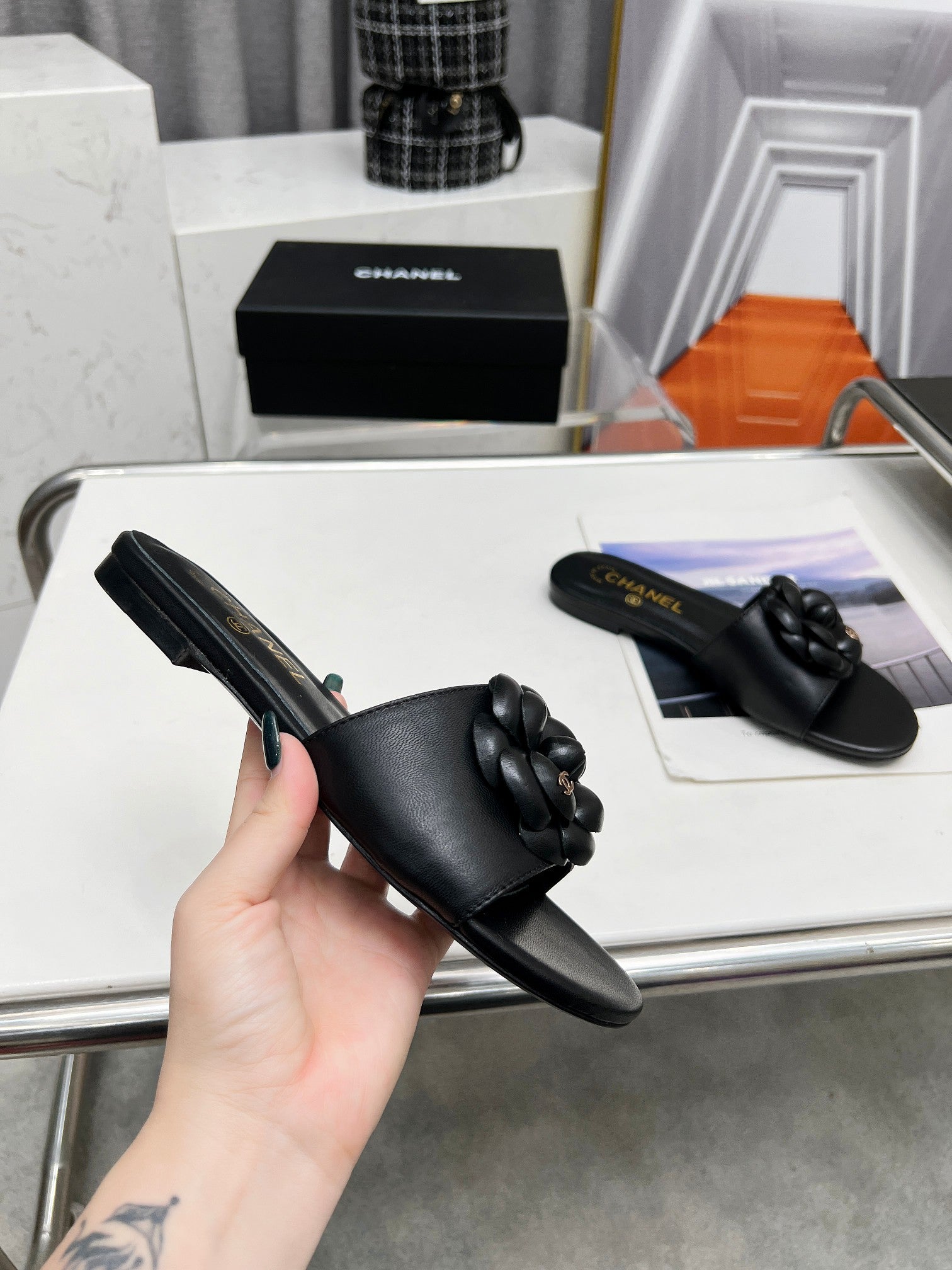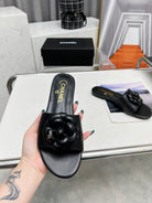 mule sandal flower black calfskin