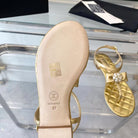 sandal gold metalic lambskin flower cc