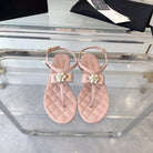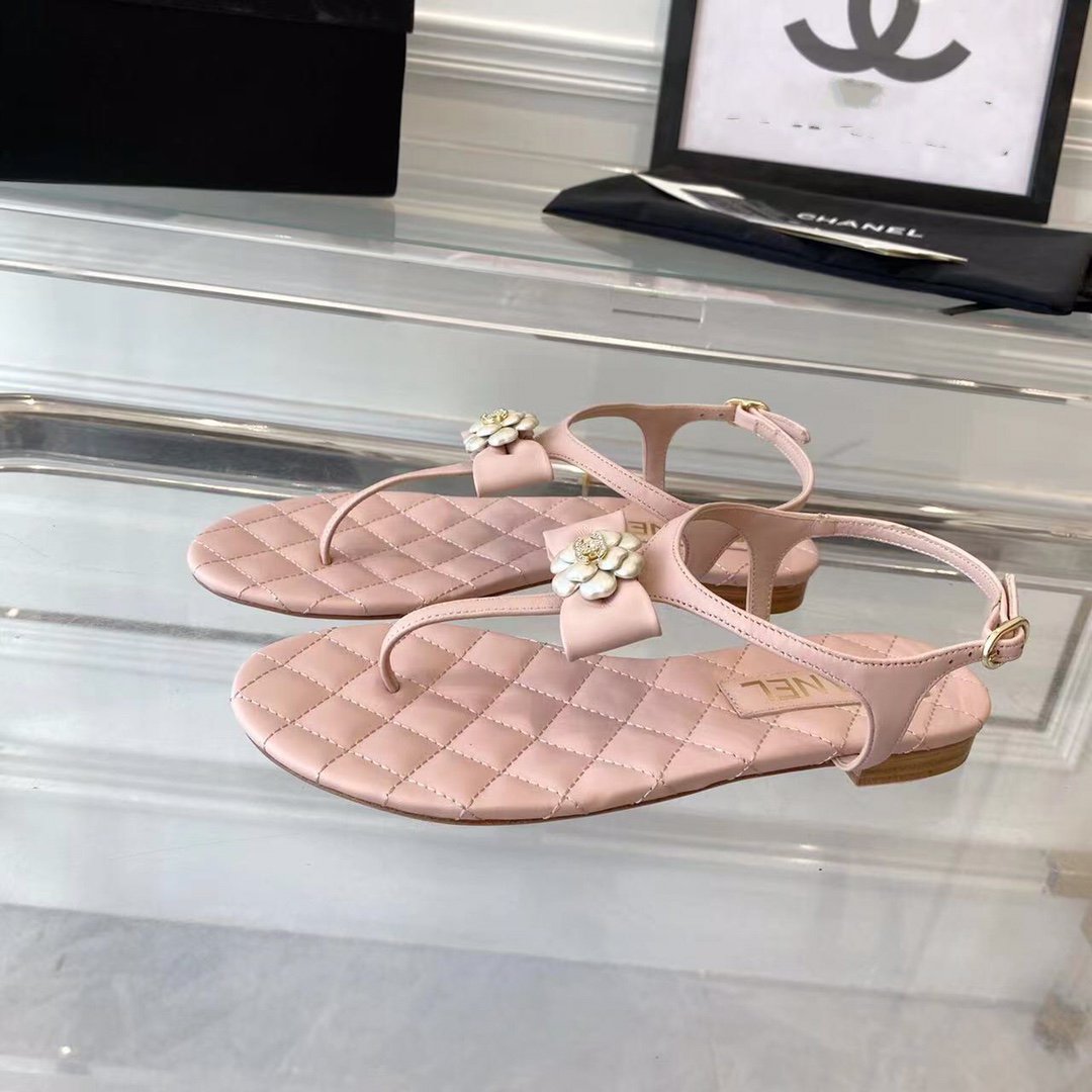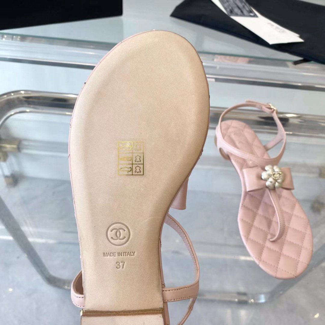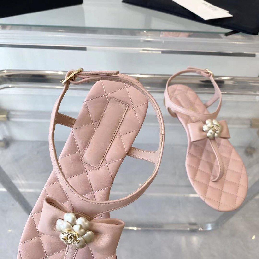 sandal pink quilted lambskin flower cc