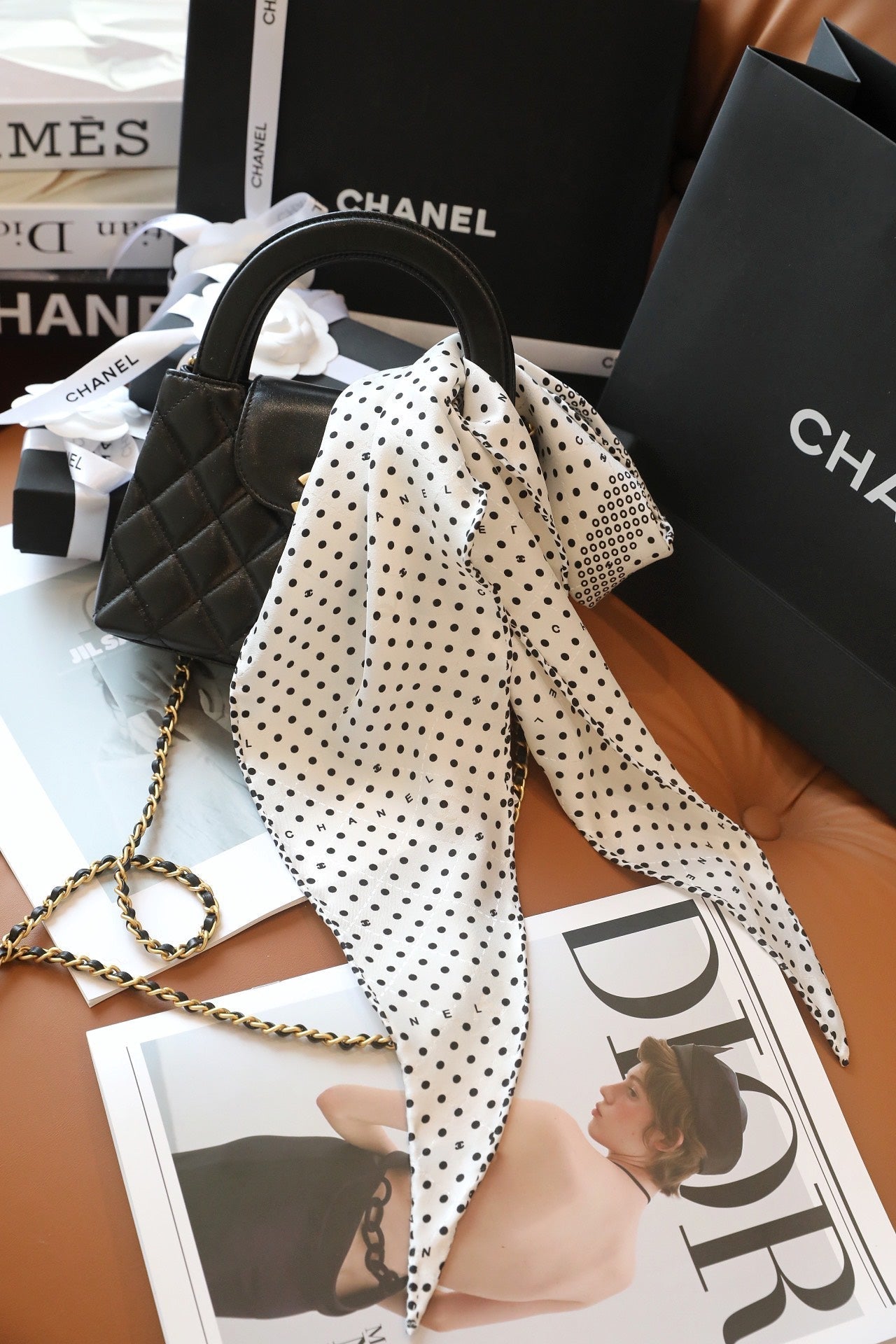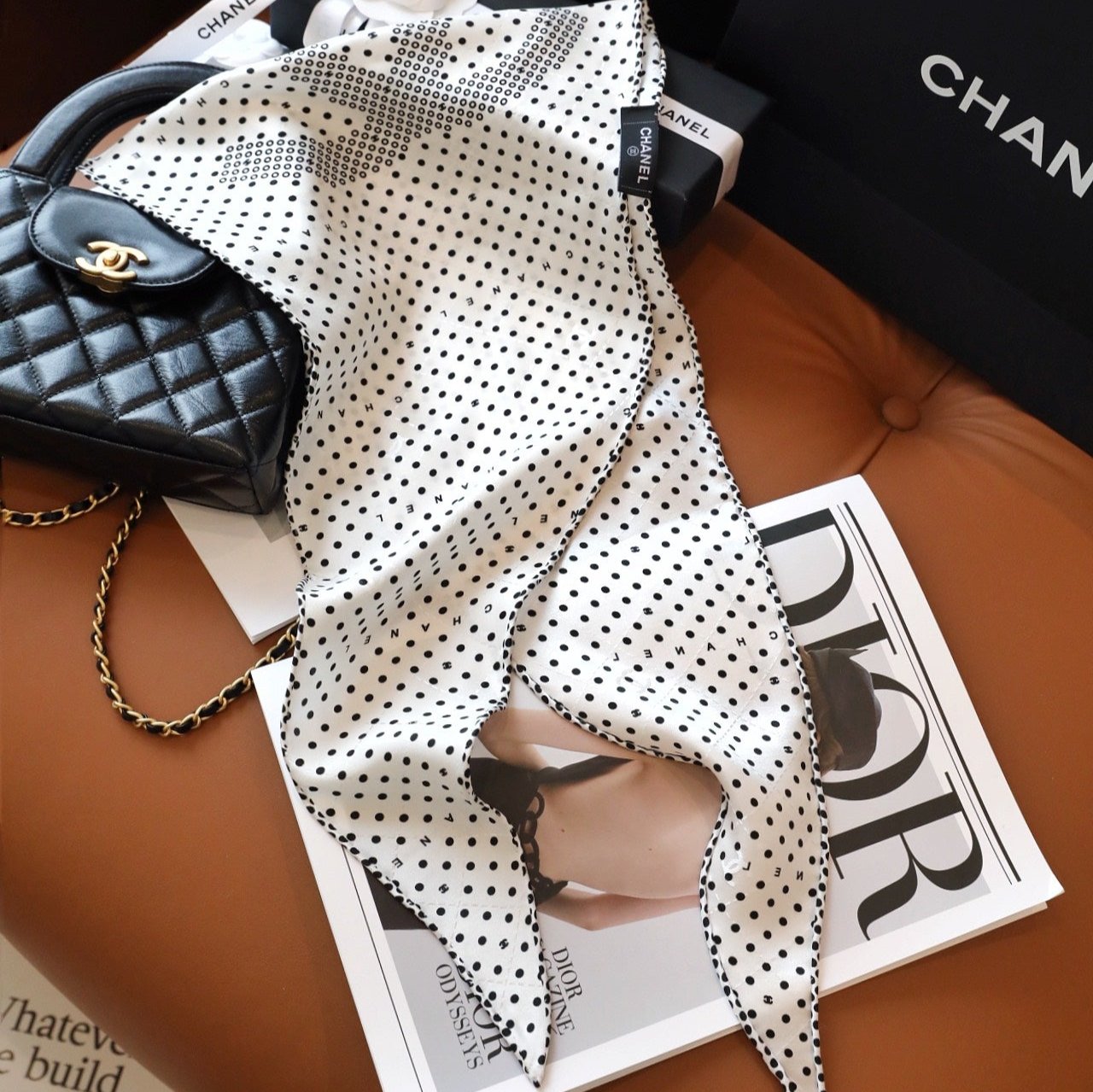 CC Scarf 110 CM In White Black Polka Dot Silk 348706