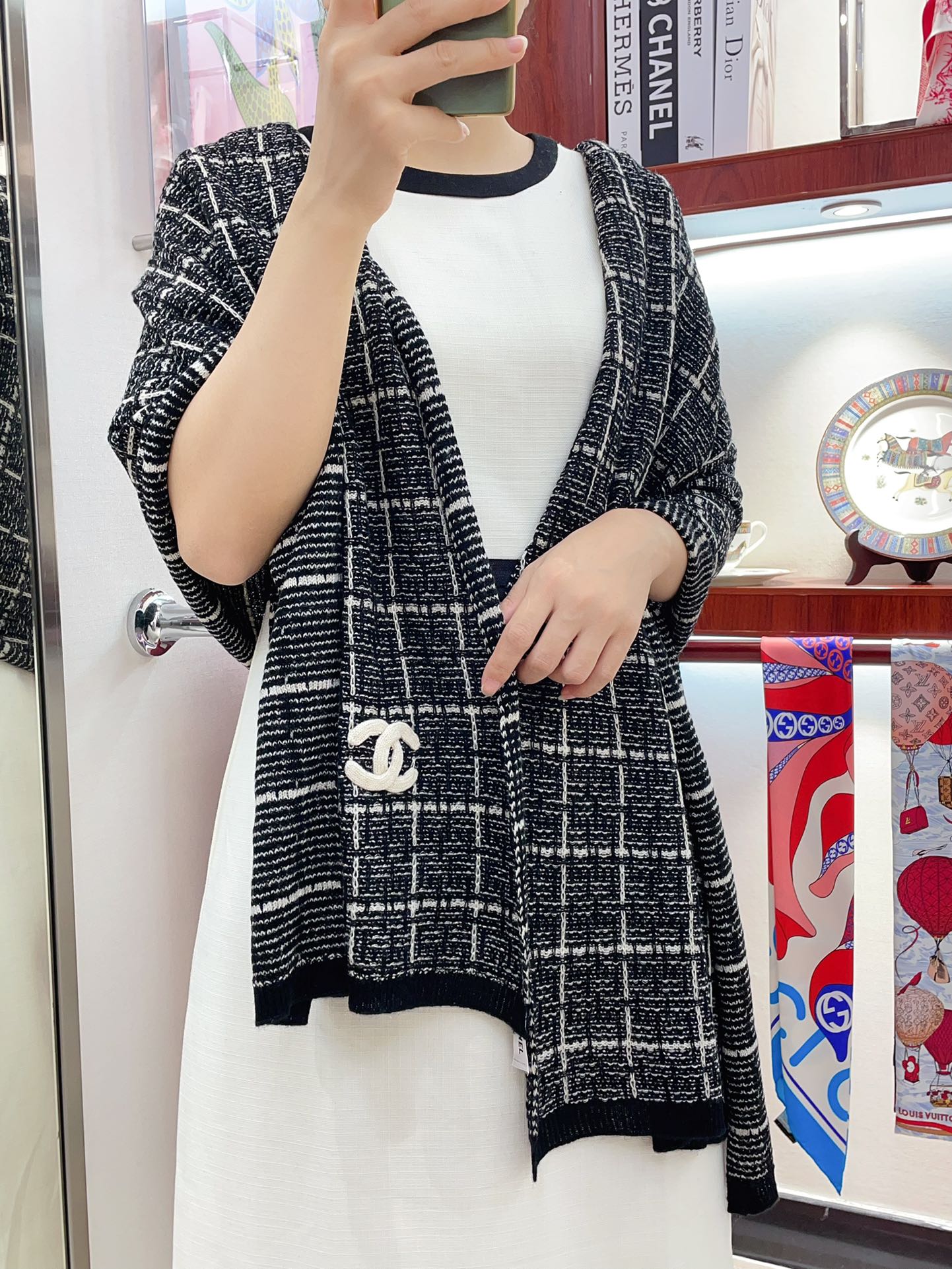 CC Scarf 180 CM In Black With White Stripes Cashmere 415181