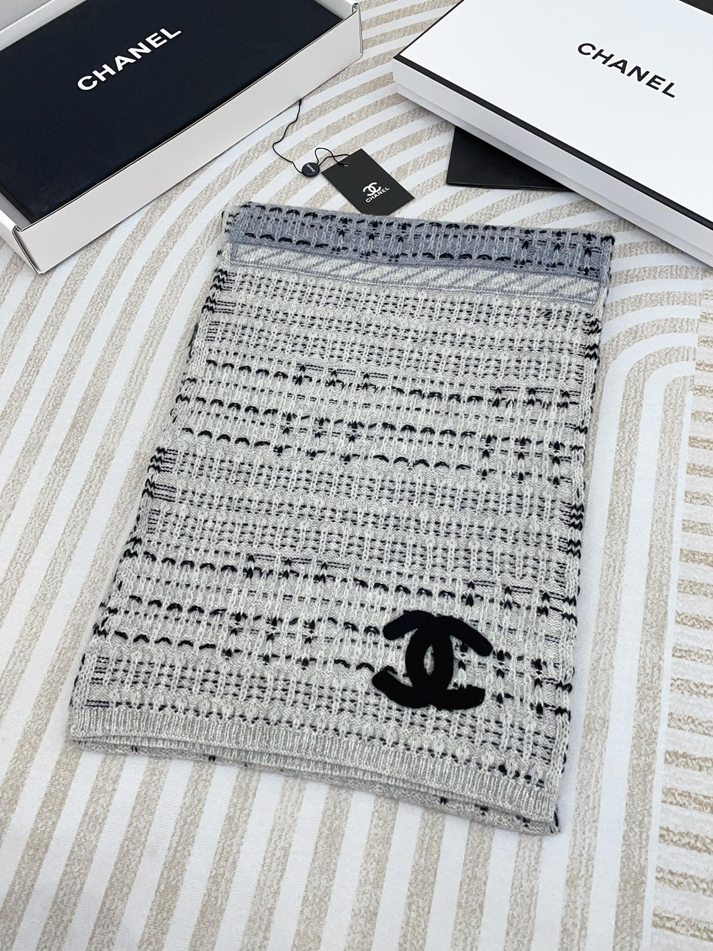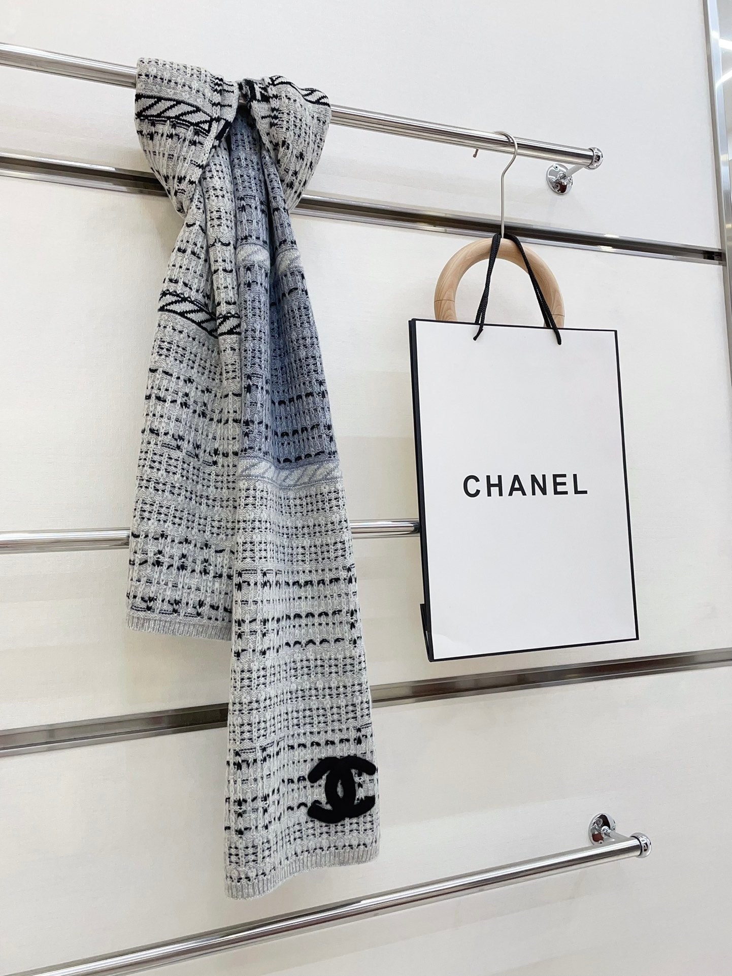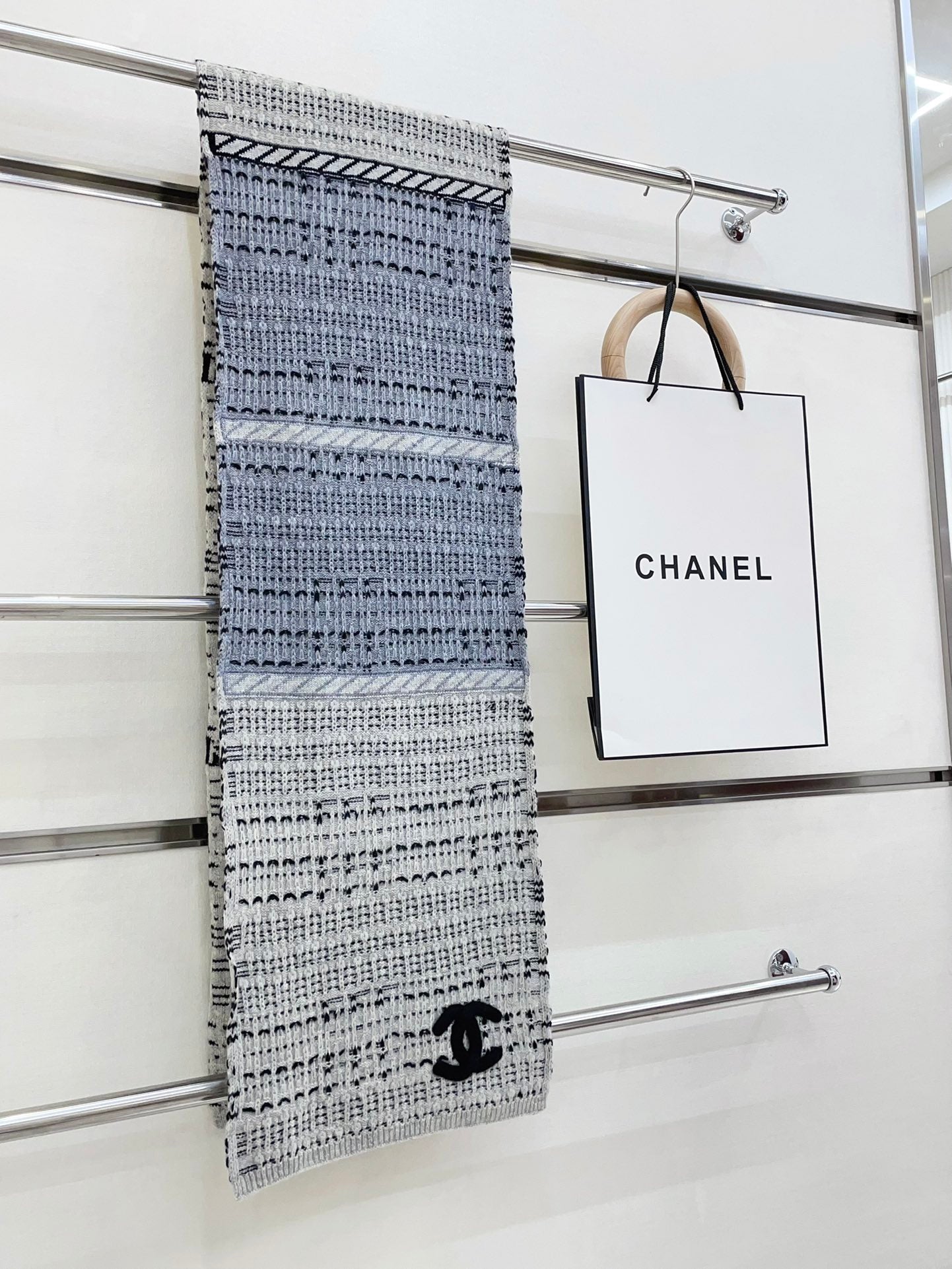 CC Scarf 180 CM In White Grey Mix Black Wool 388185