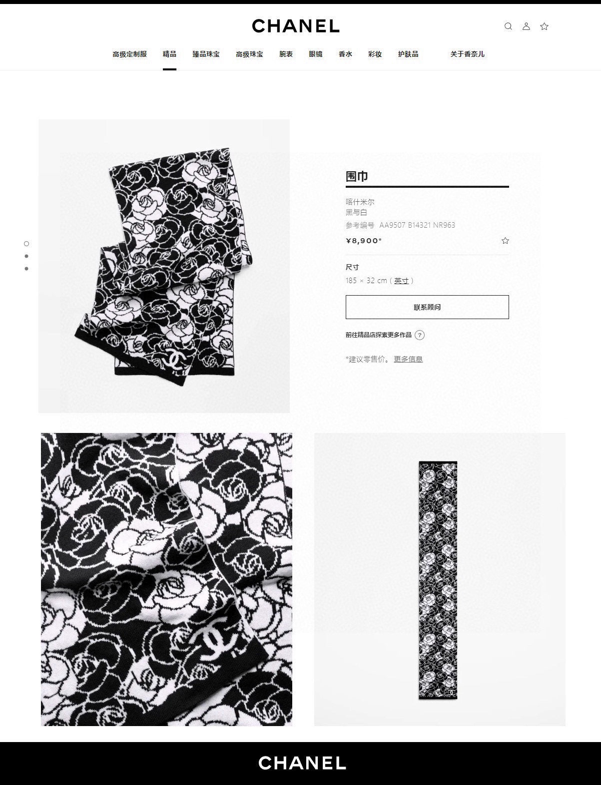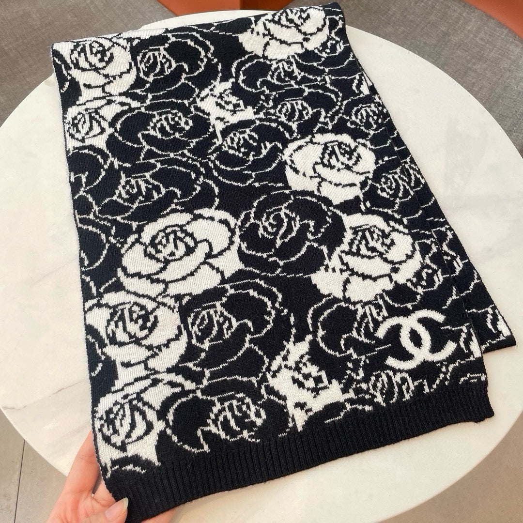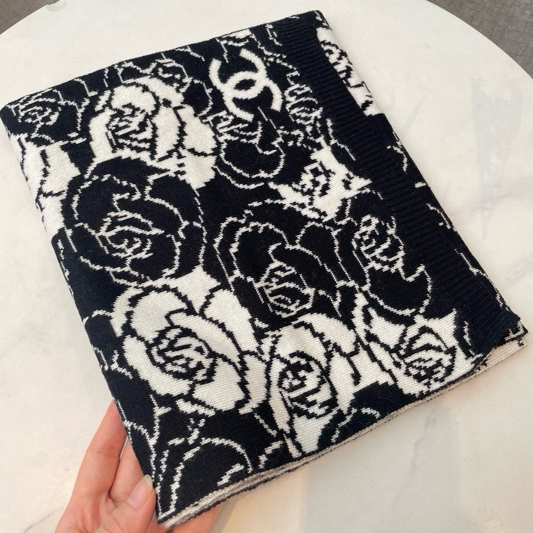 CC Scarf 185 CM In Black Mix White Cashmere And Wool 411652
