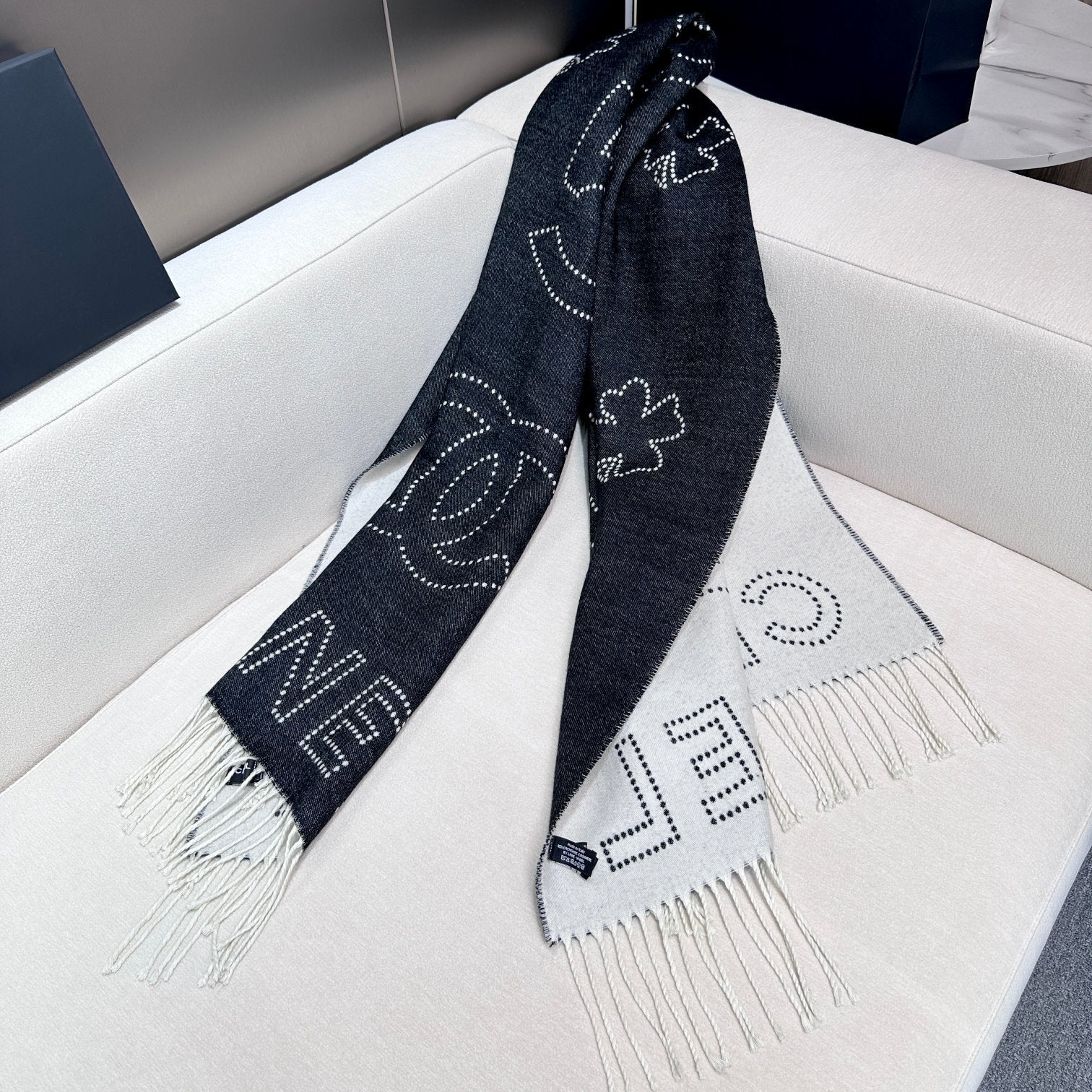CC Scarf 200 CM In Black Mix White Cashmere 422706