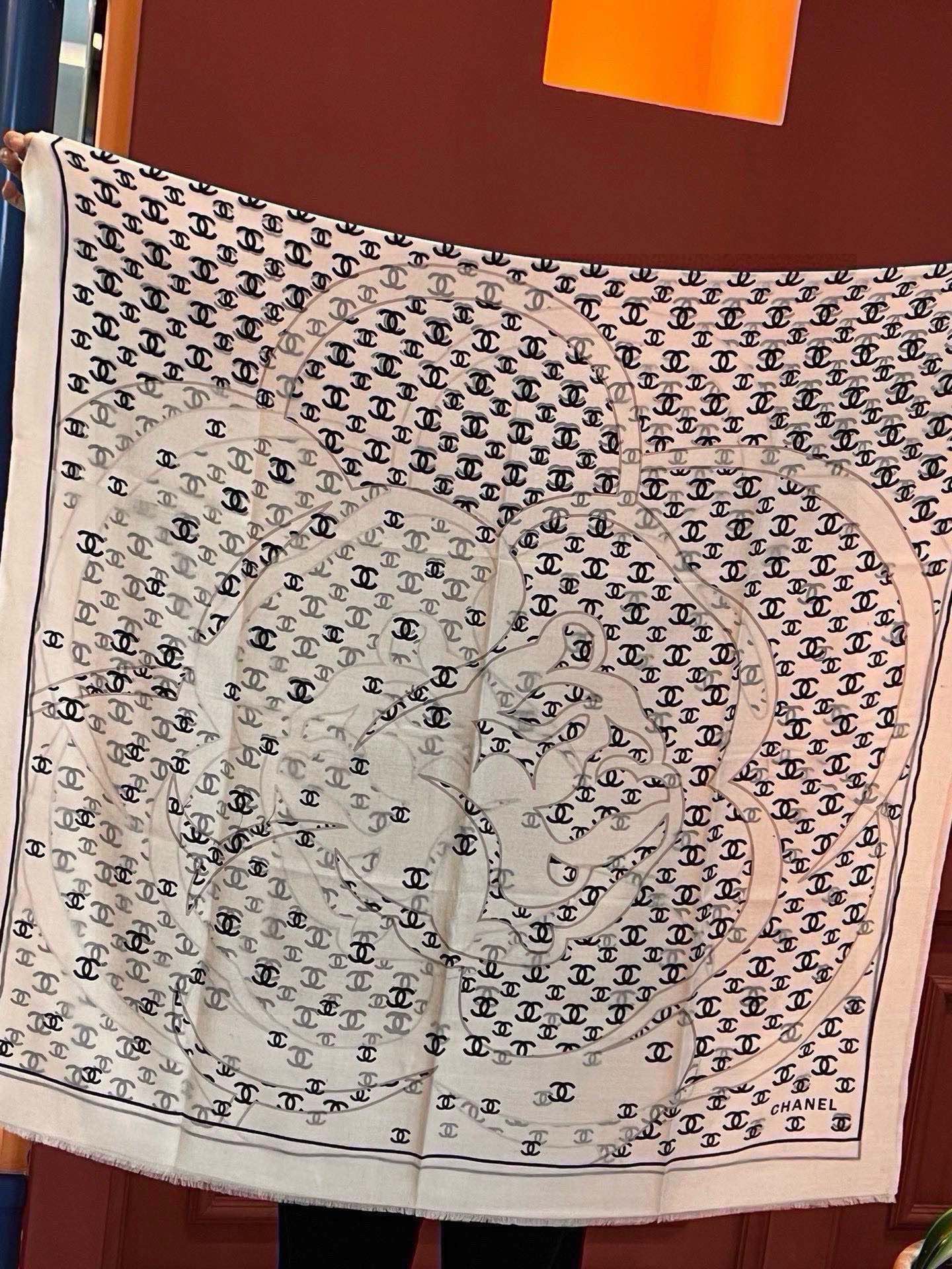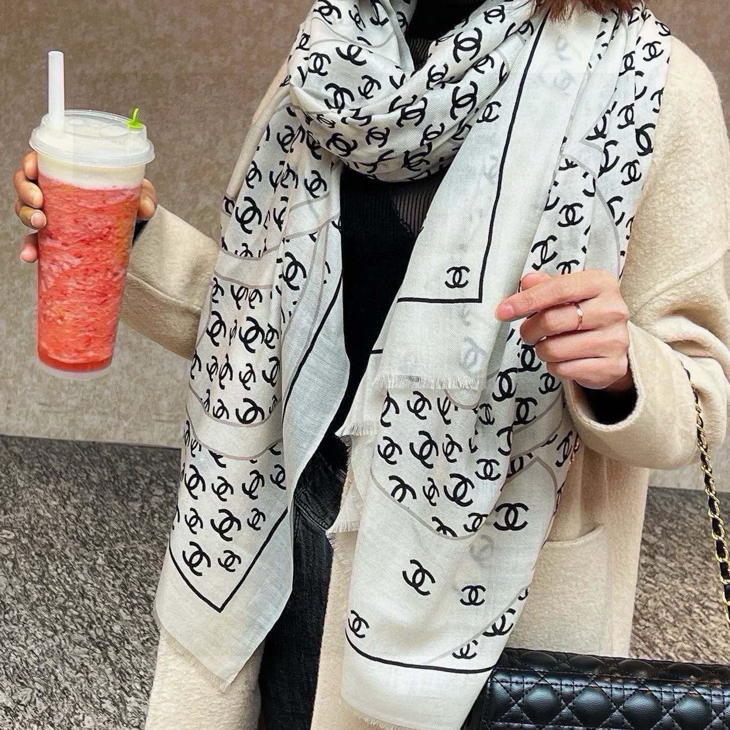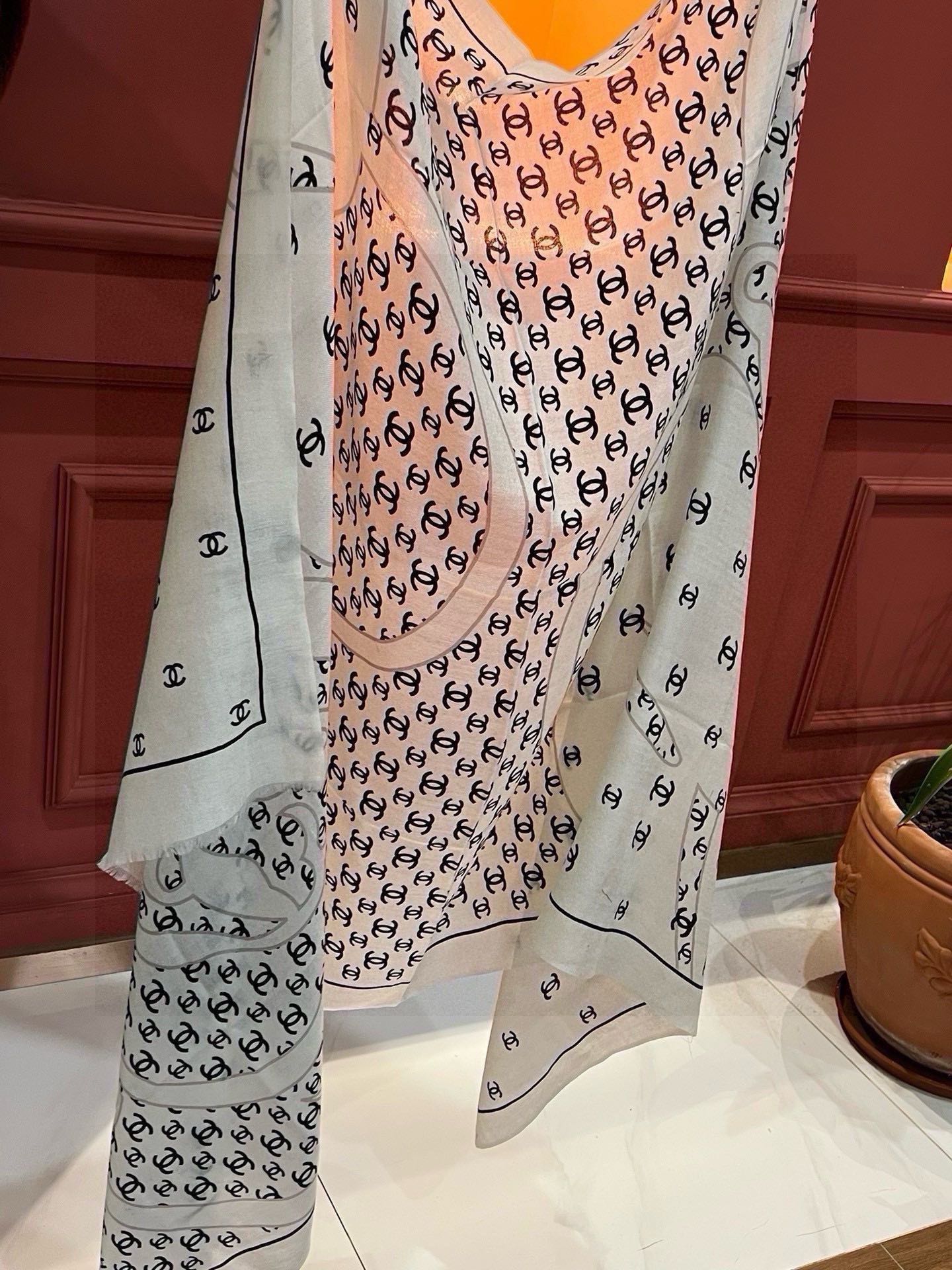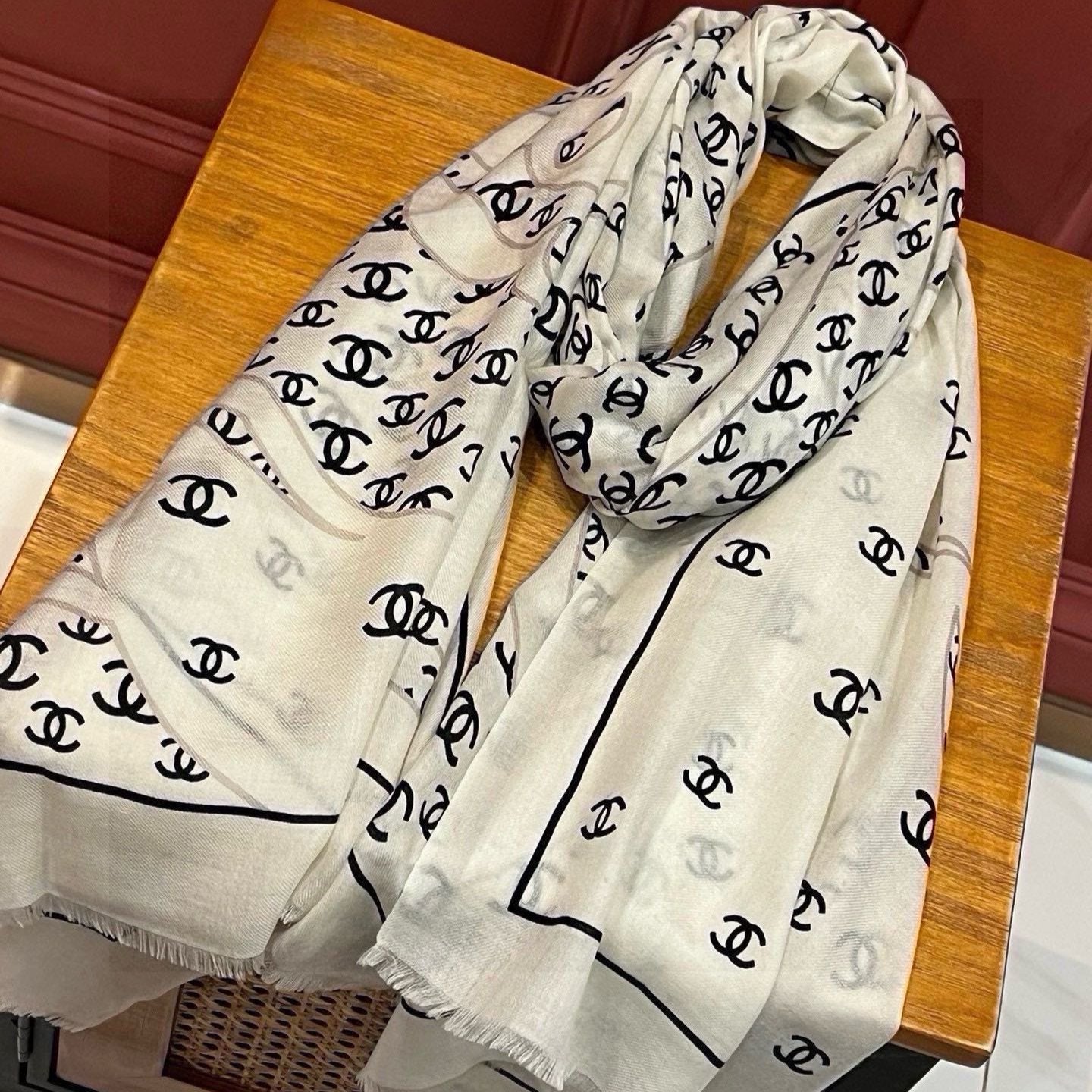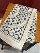 CC Scarf 200 CM In White With Black Logo Cashmere 363602