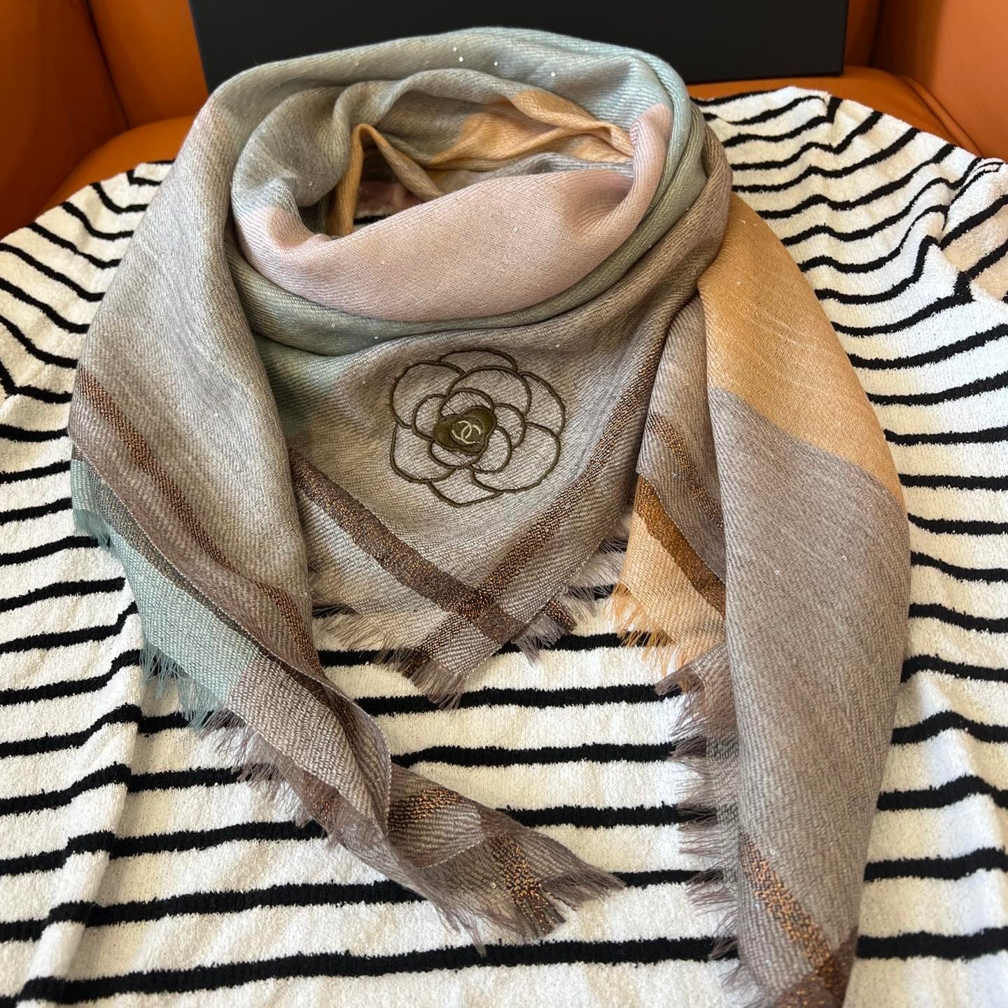 CC Square Scarf 100 CM In Colorful Cashmere And Wool Mix Sequin Fabric 345994
