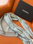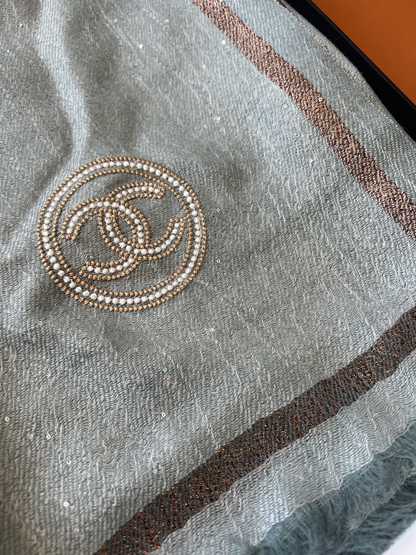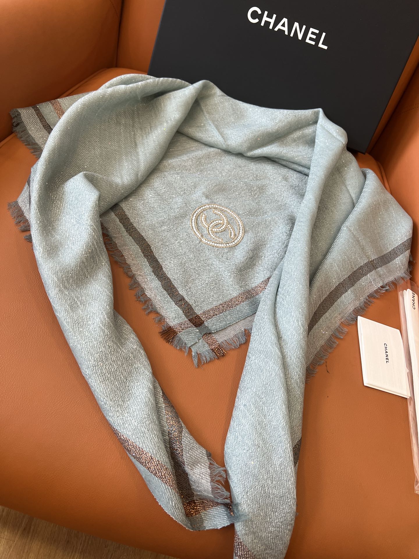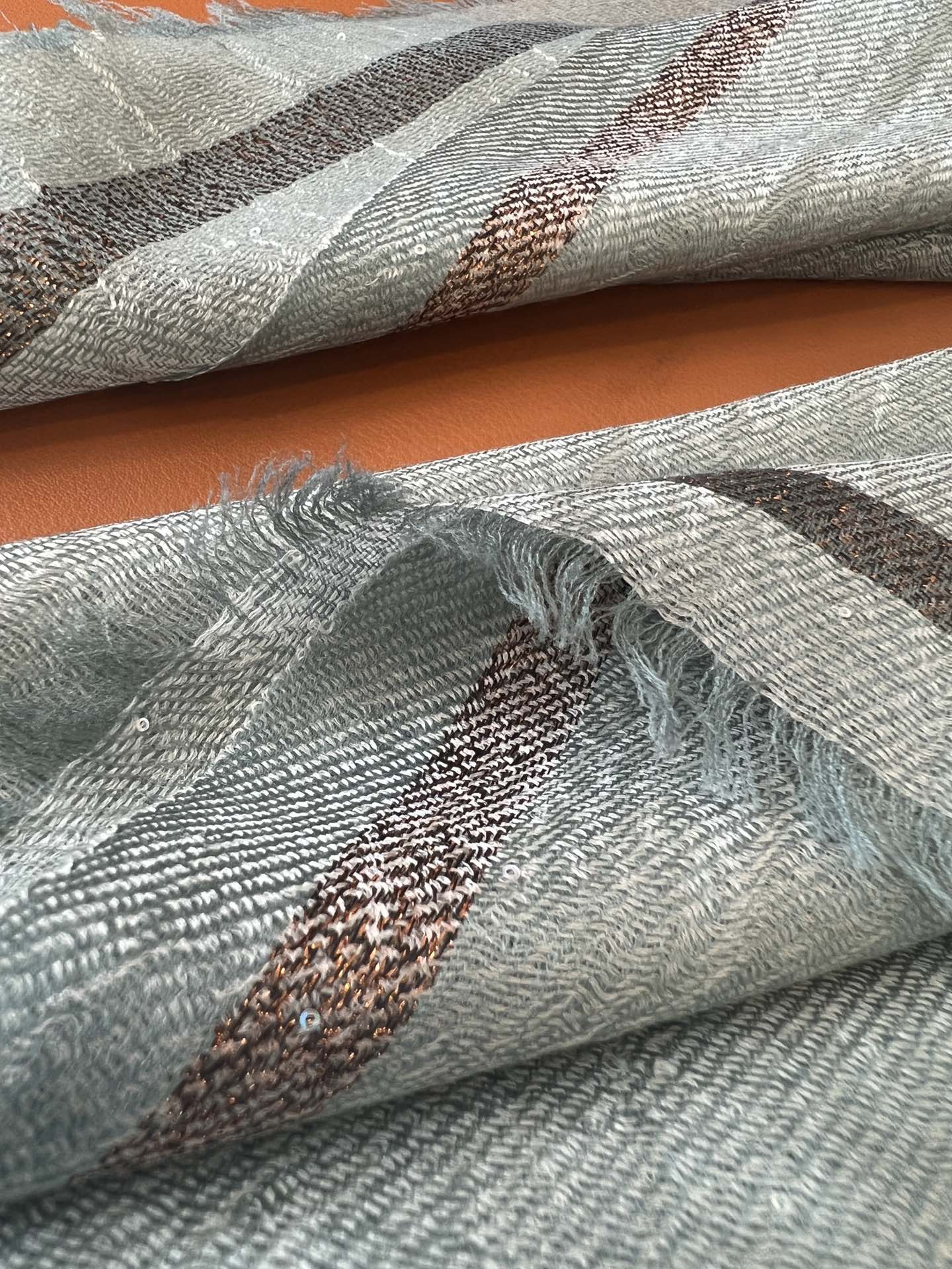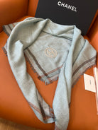 CC Square Scarf 100 CM In Grey Blue Cashmere And Wool Mix Sequin Fabric 345993