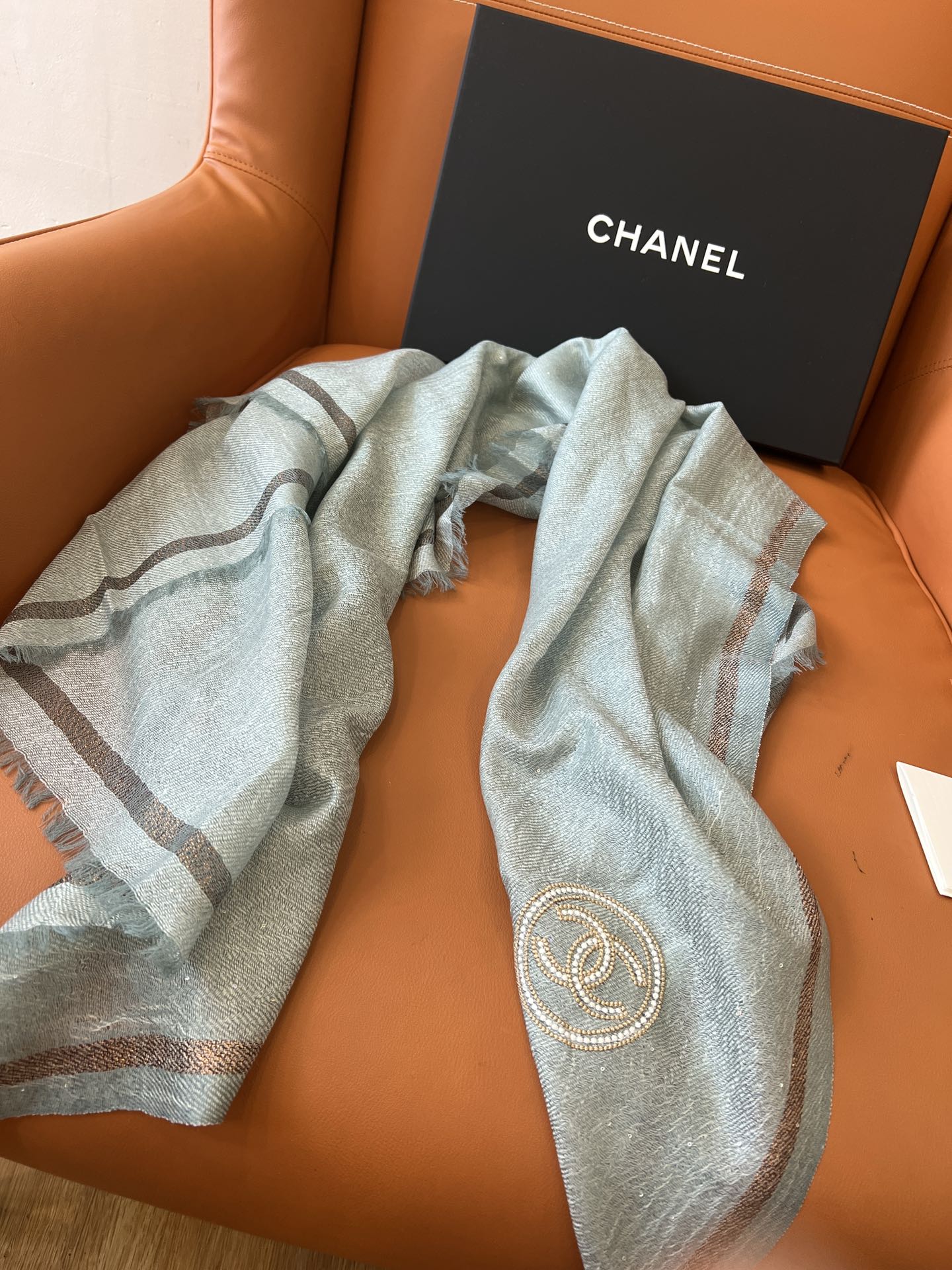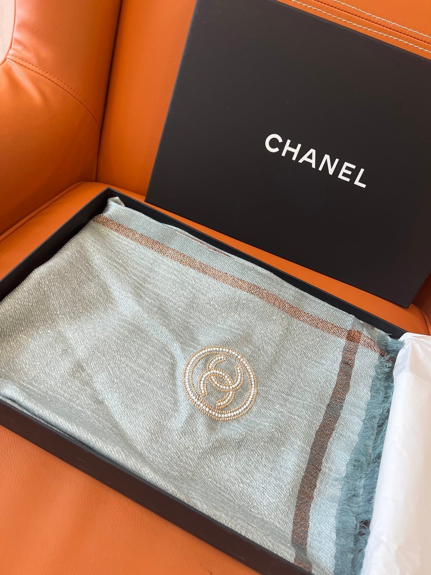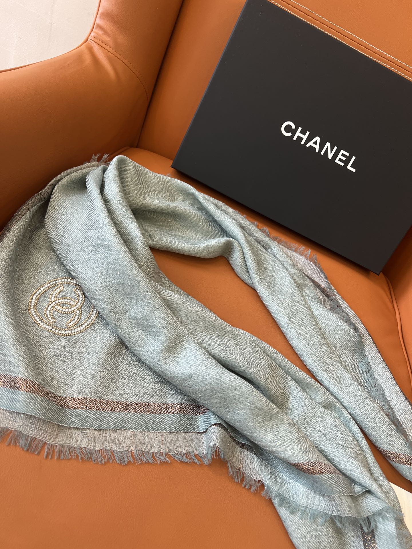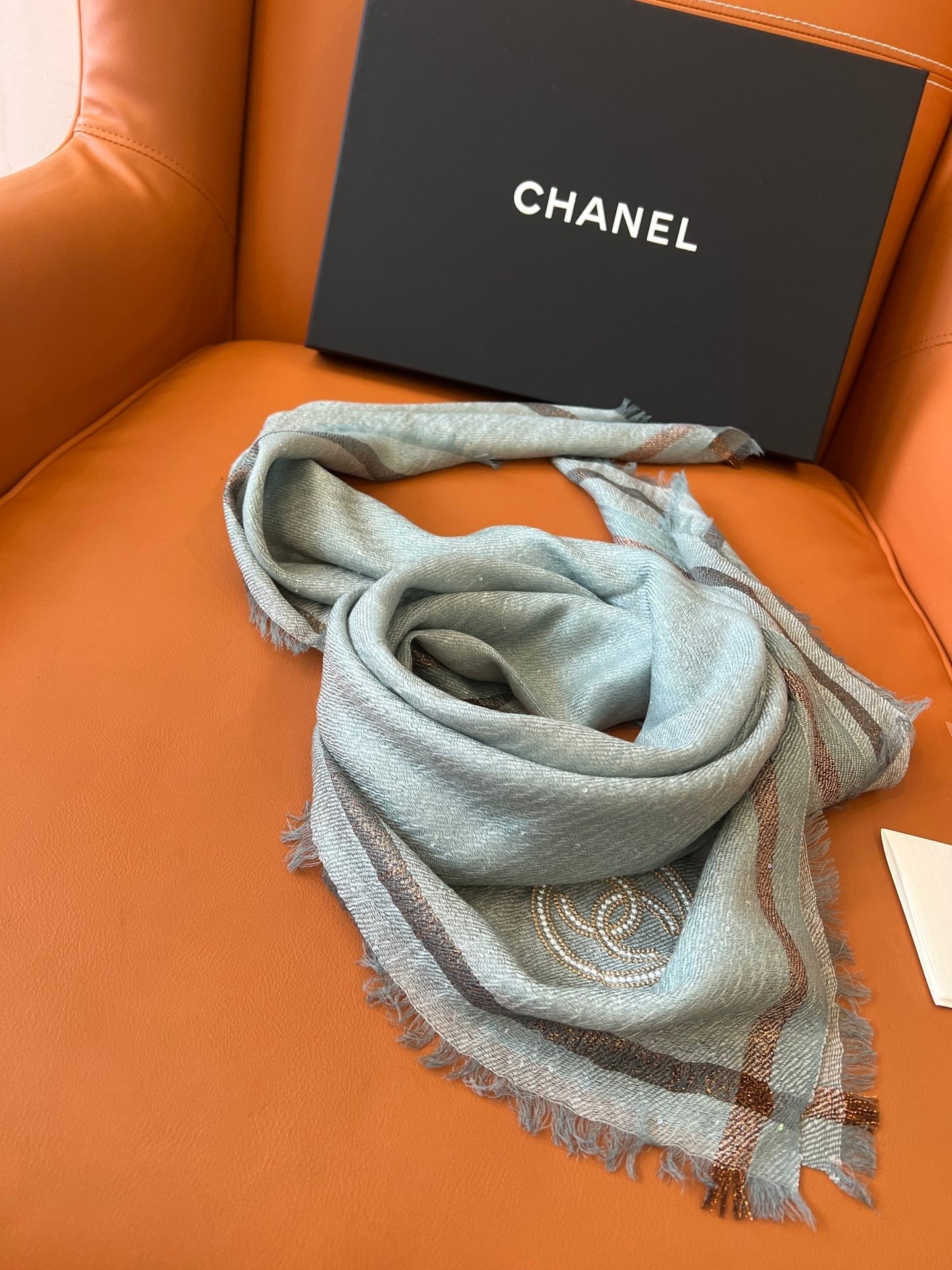 CC Square Scarf 100 CM In Grey Blue Cashmere And Wool Mix Sequin Fabric 345993