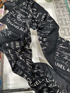 CC Square Scarf 110 CM In Black With White Text Cashmere Silk 320584