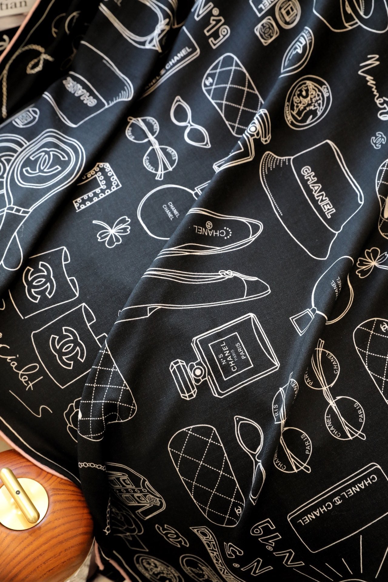 CC Square Scarf 140 CM In Black Mix White Cashmere Silk 368822