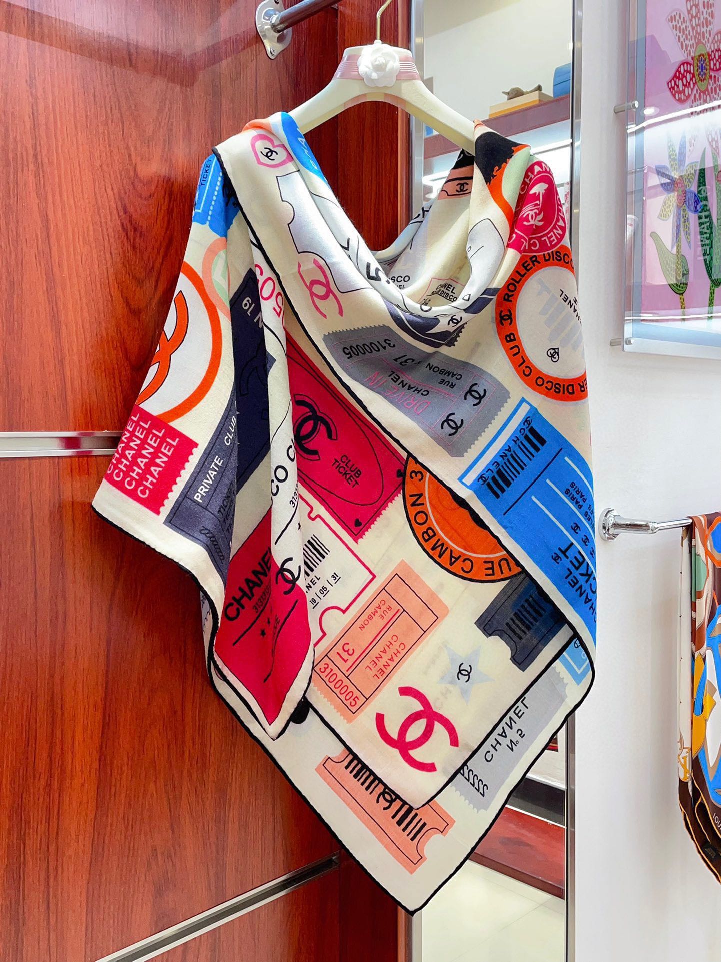 CC Square Scarf 140 CM In Multicolored Cashmere And Silk 388151
