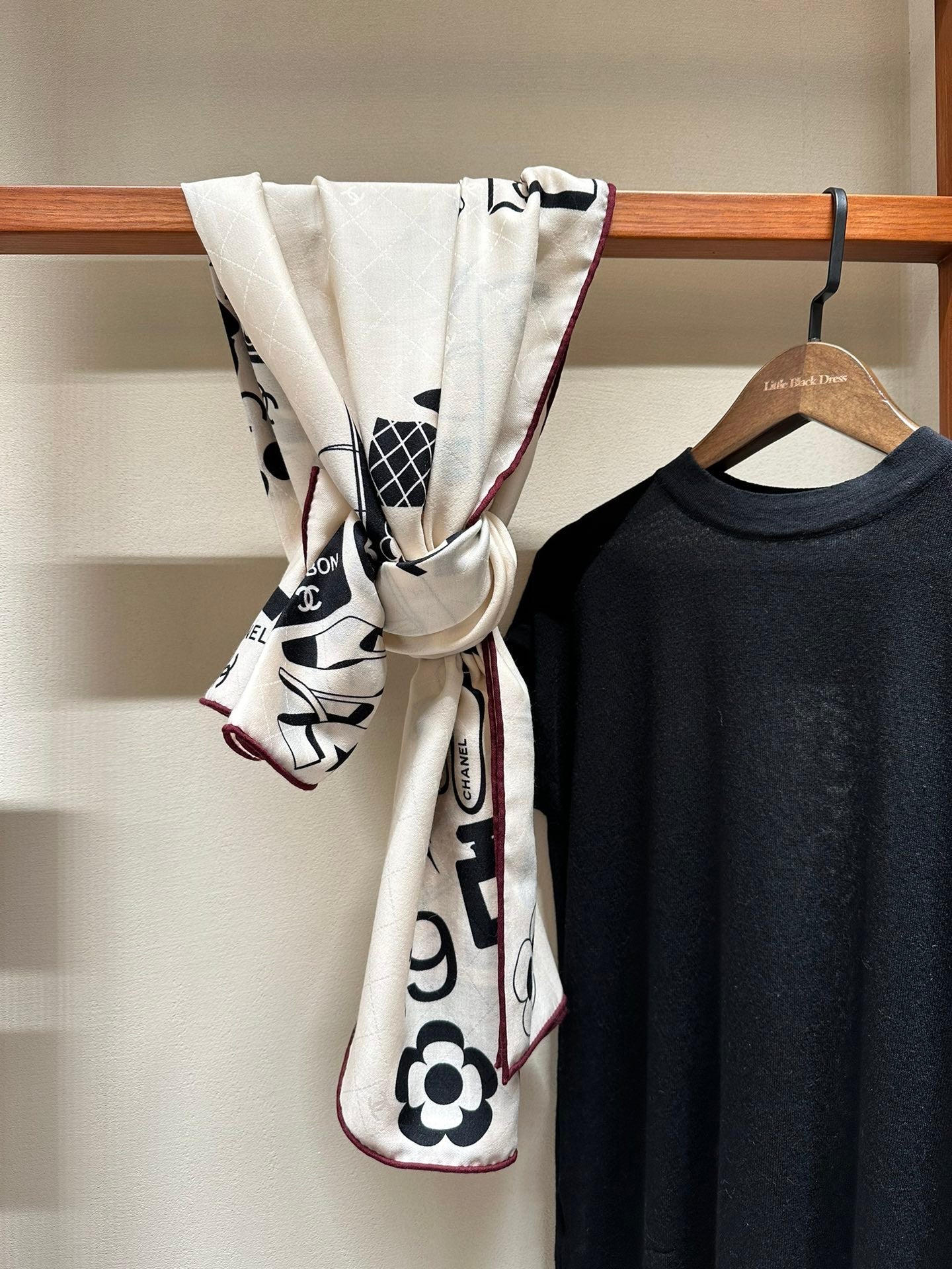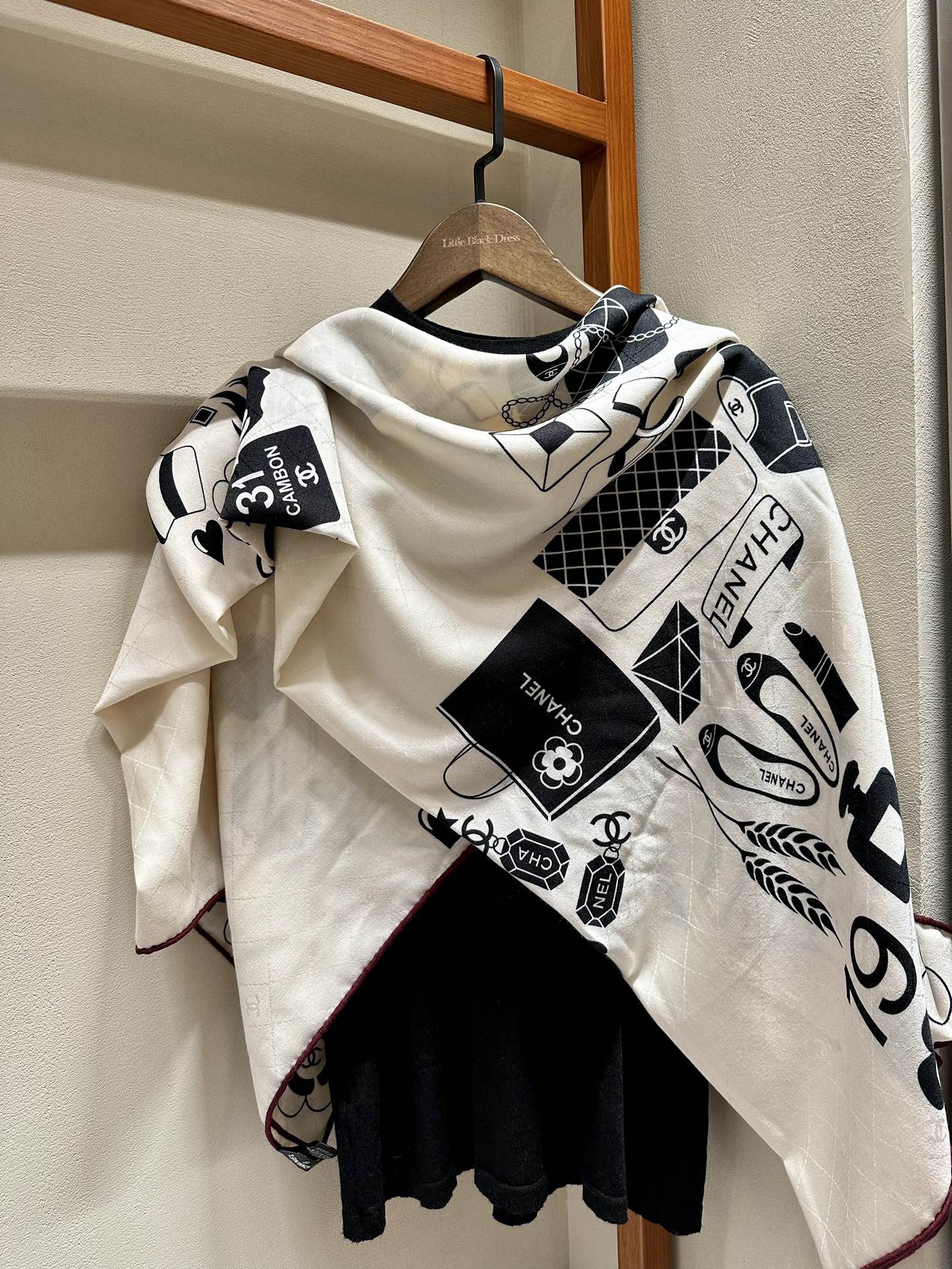 CC Square Scarf 140 CM In White Black Silk Cashmere 413676