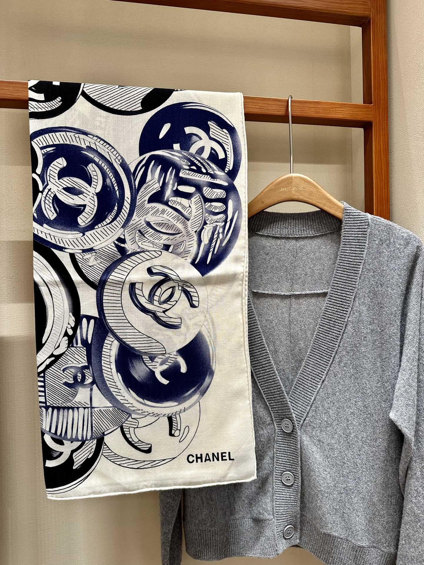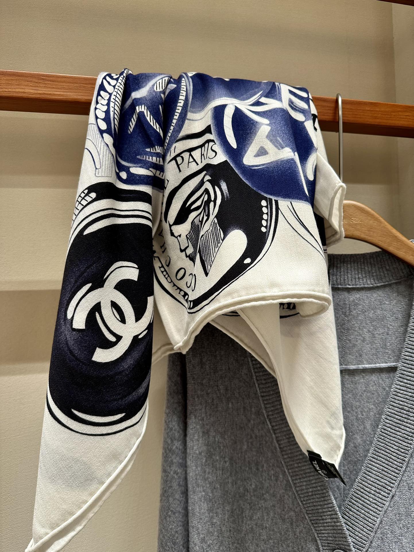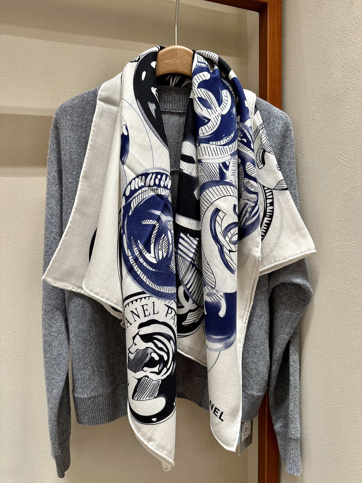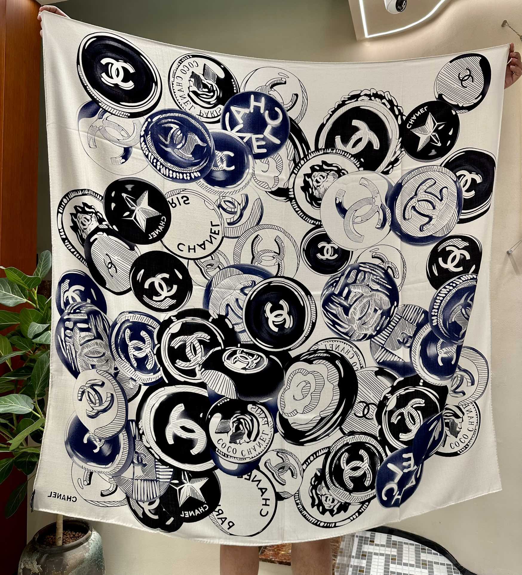 CC Square Scarf 140 CM In White Colorful Cashmere And Silk 418149
