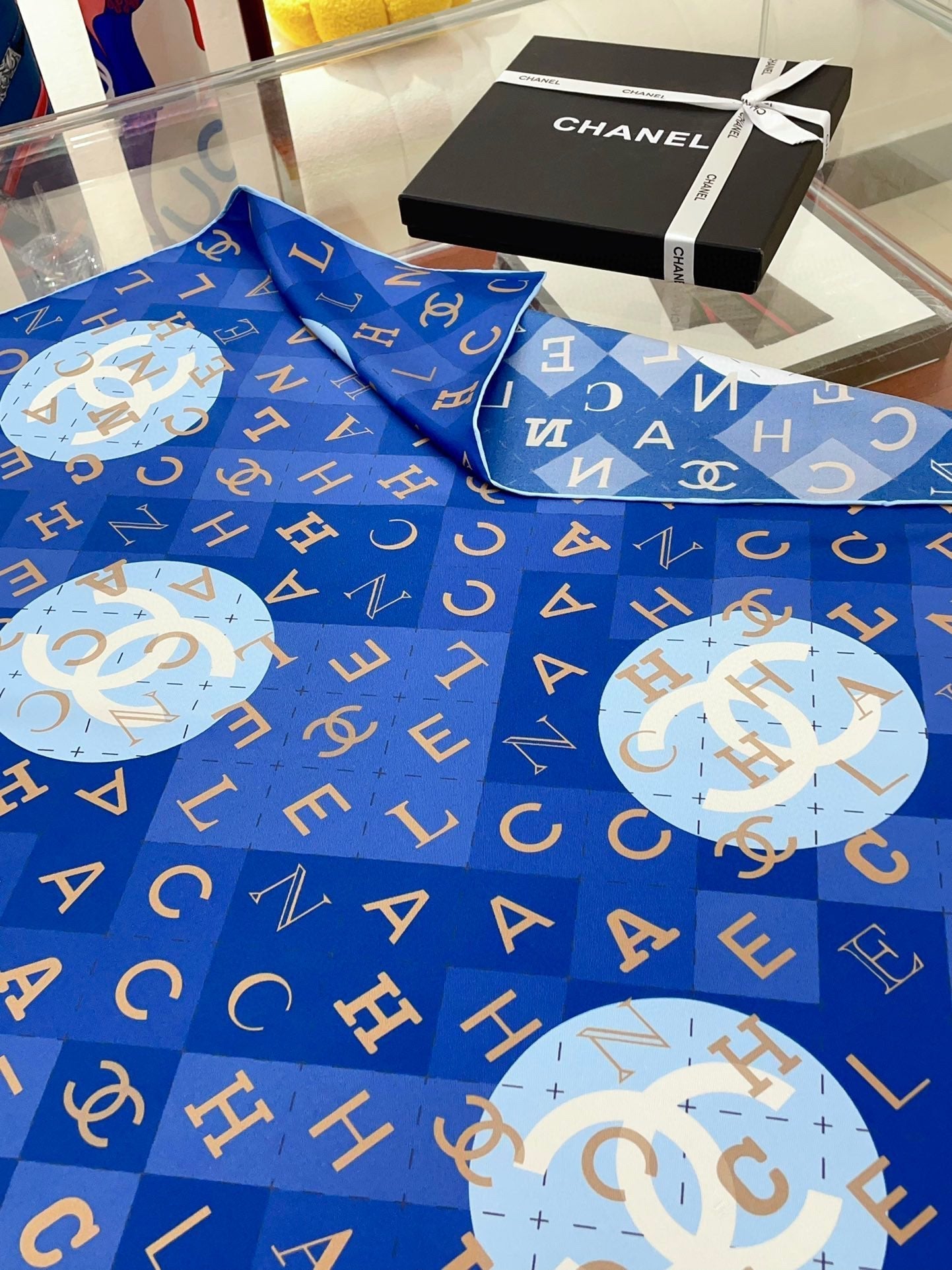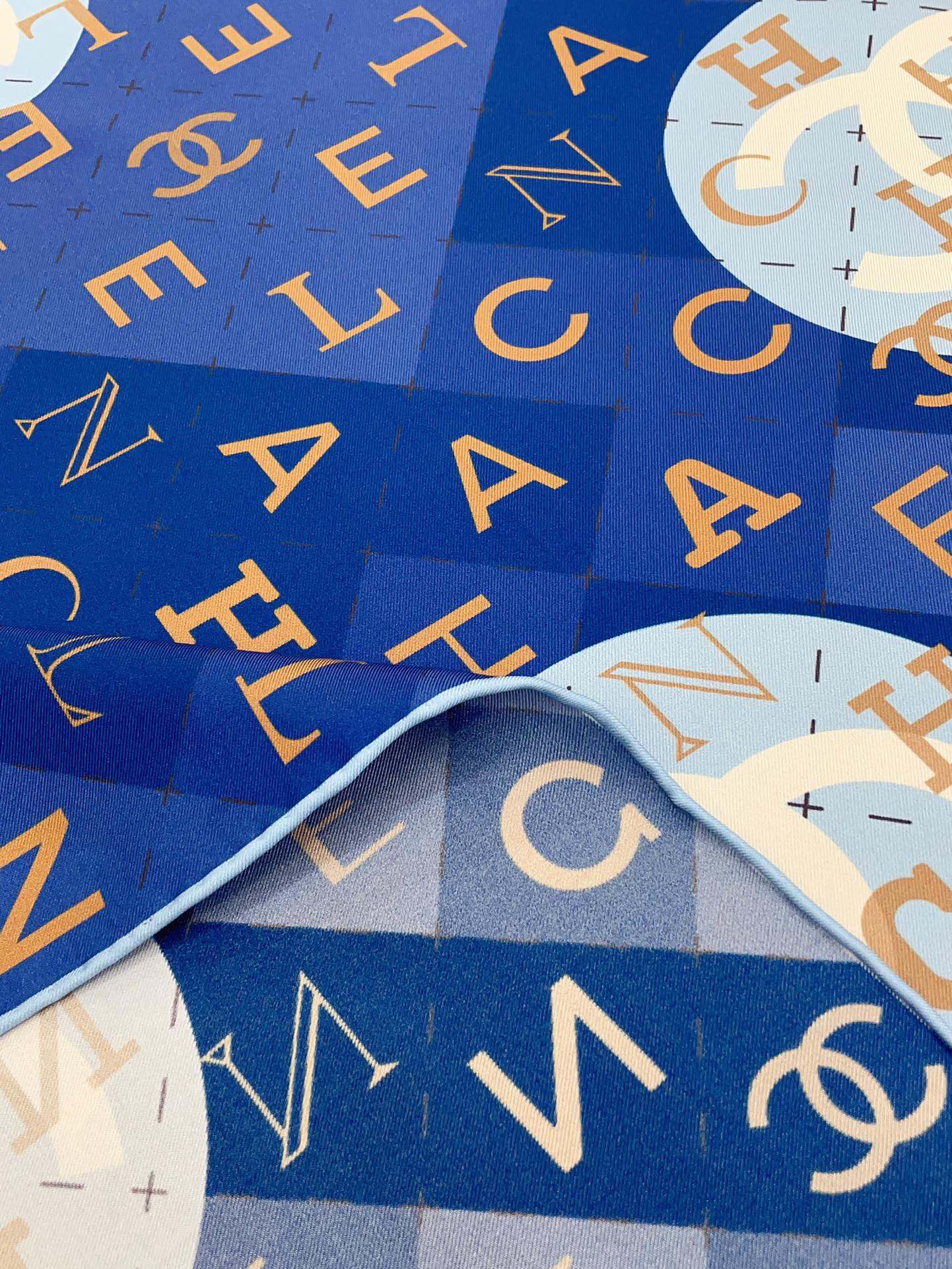 CC Square Scarf 90 CM In Blue Silk Twill 306566