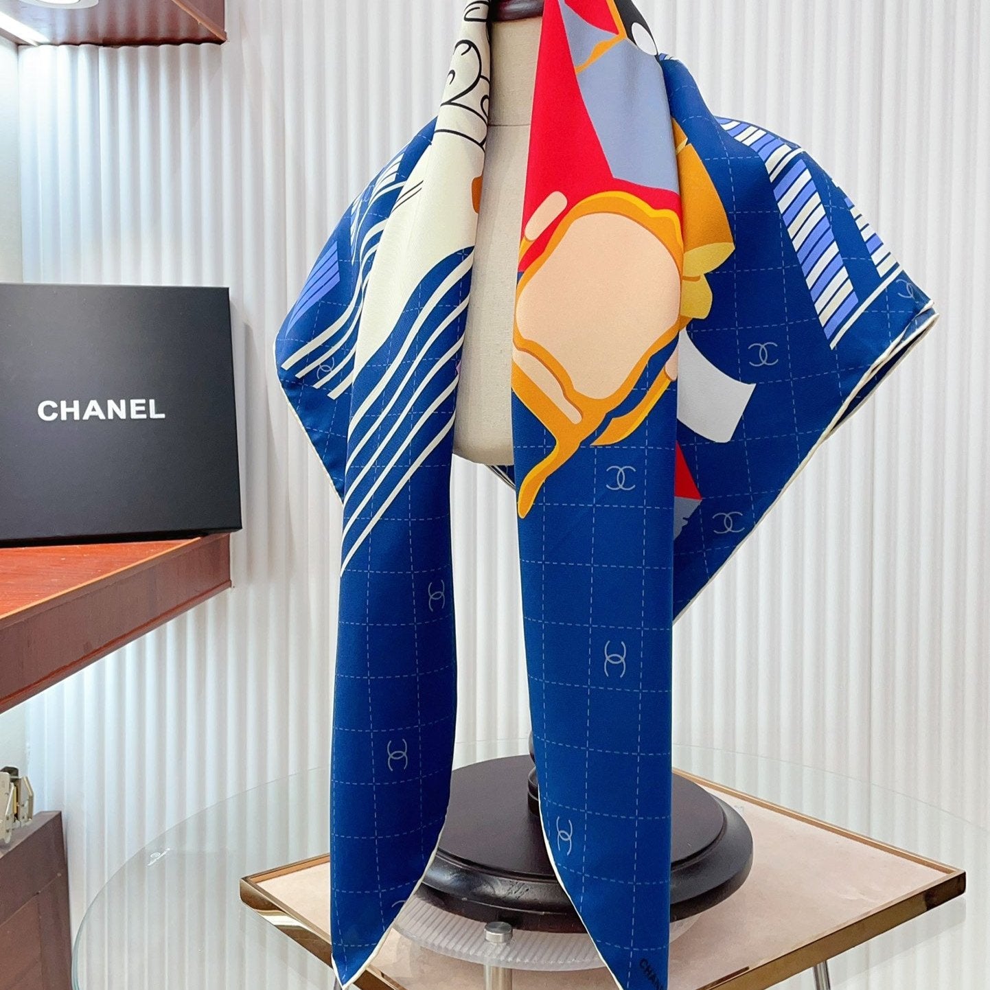 CC Square Scarf 90 CM In Dark Blue Colorful Silk Twill 187427