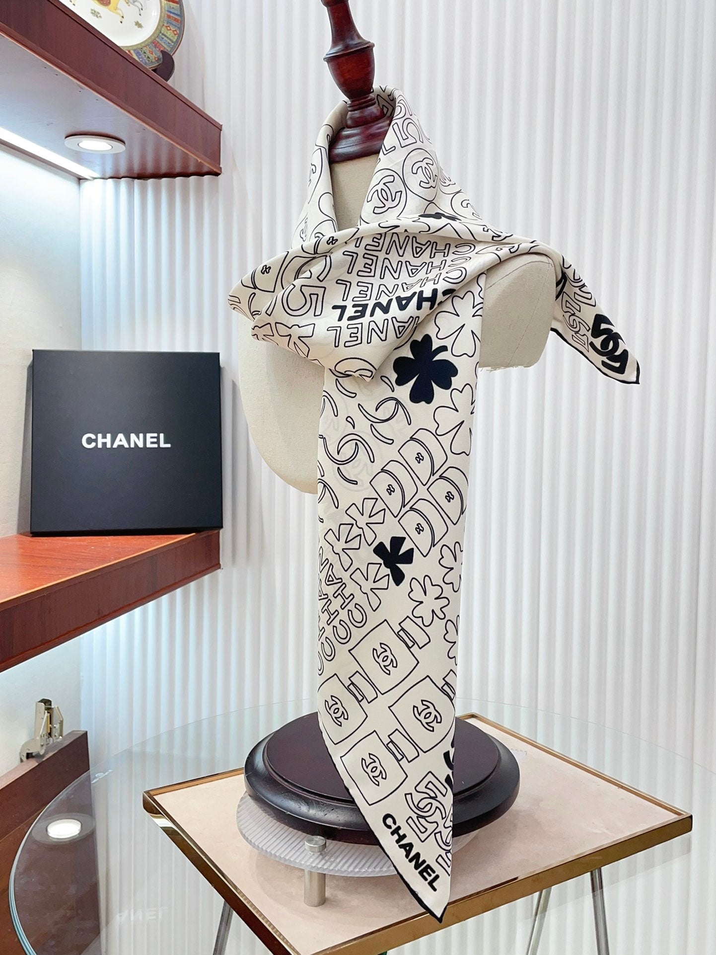 CC Square Scarf 90 CM In White Mix Black Cashmere Silk 316269