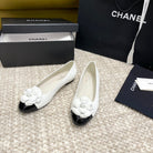 ballet flat flower white calfskin black patent calfskin
