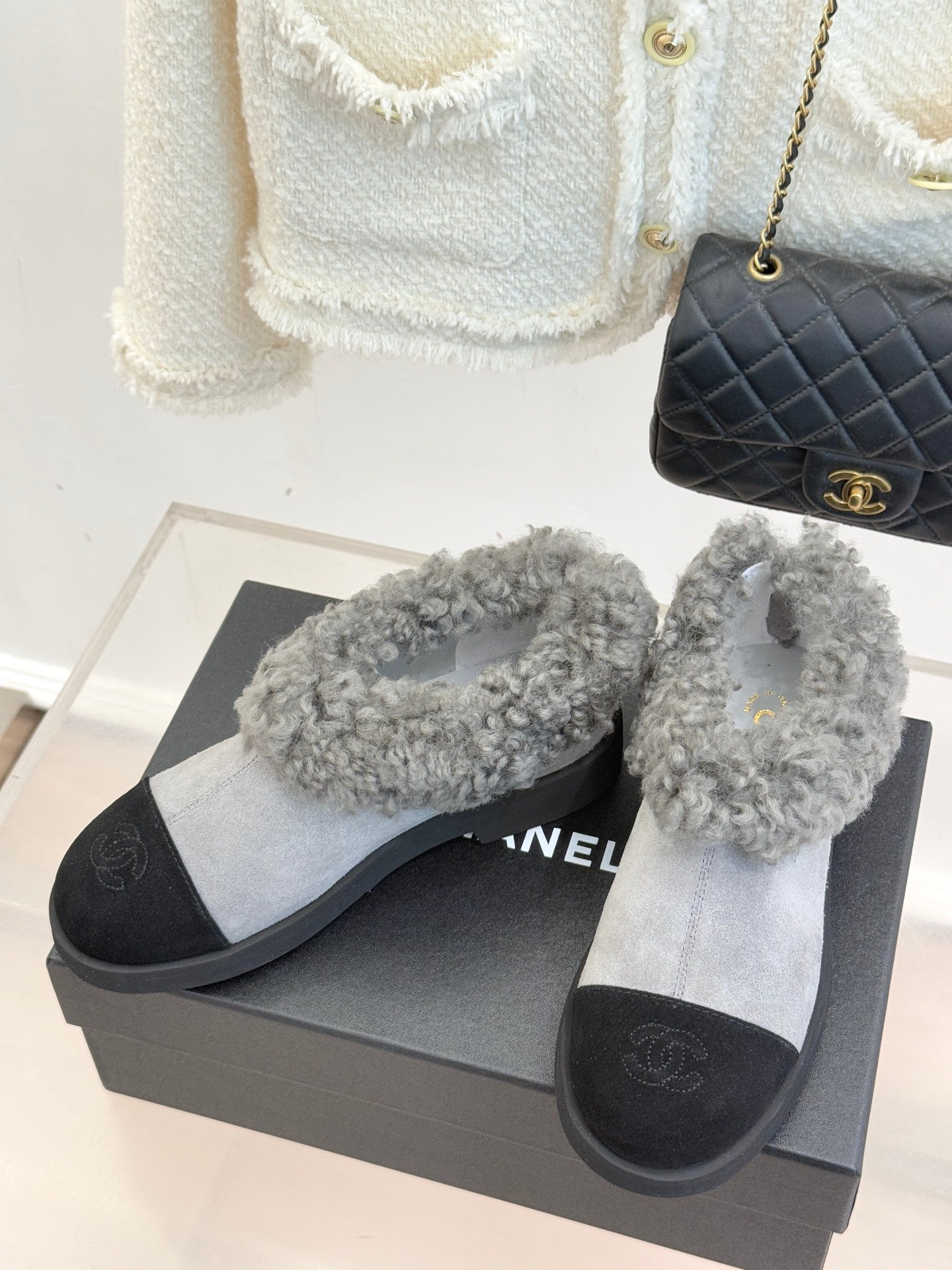 CC 25s Furry Snow Boots Gray Black Suede Wool 512062