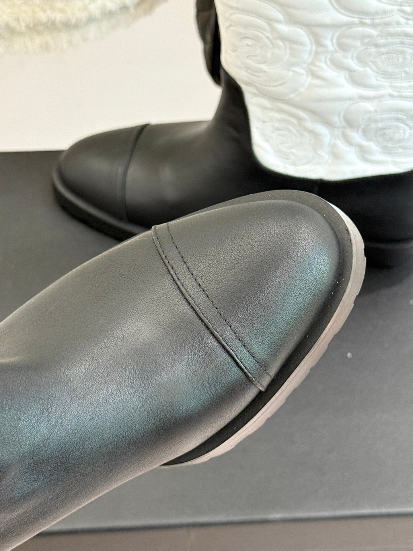 CC cowboy mid-calf boots black white sheepskin denim fabric 511981