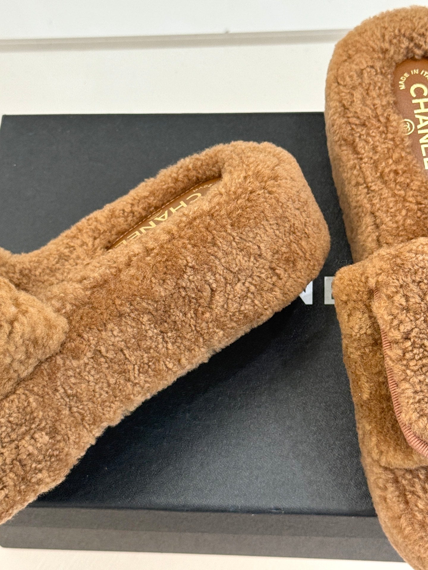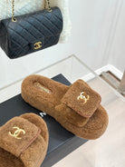 Chanel 25 Buckle Flip-up Thick-soled Slippers Brown Wool 465384