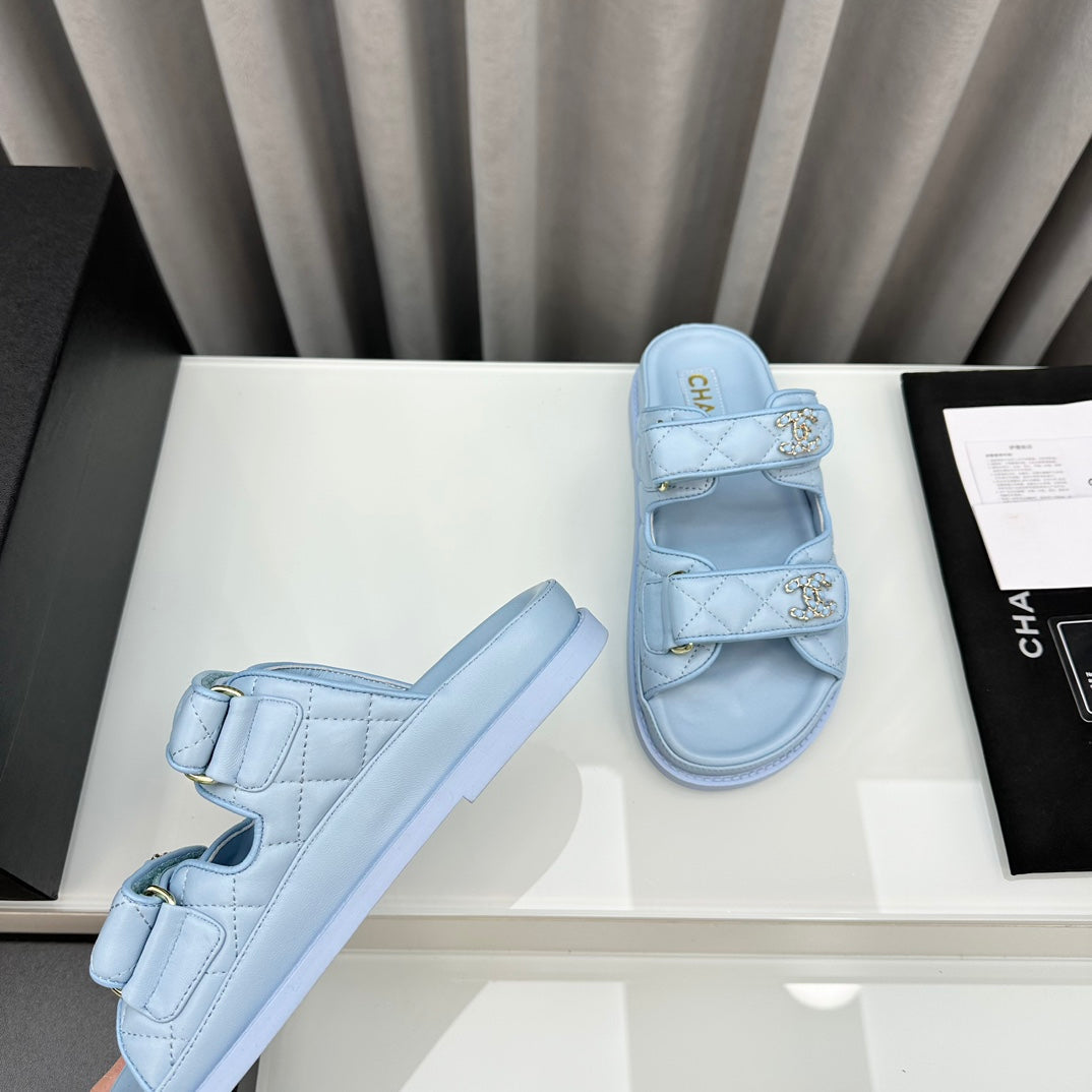 dad sandals cloud blue lambskin mules