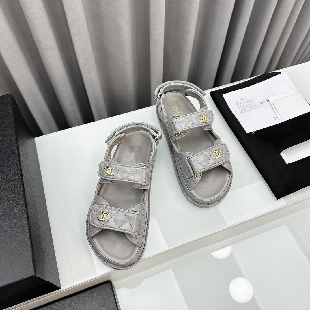 dad sandals grey patent lambskin