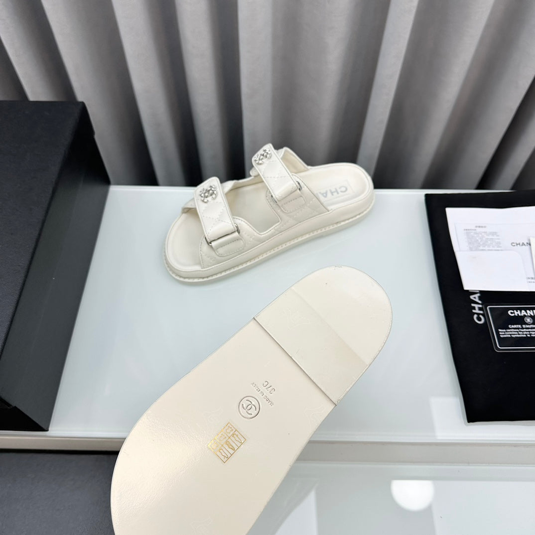 dad sandals white lambskin interwoven leather cc