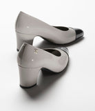 pumps light gray black patent calfskin