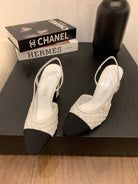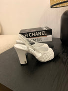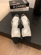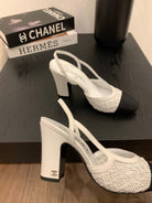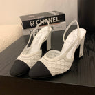 CC 25 Sandal Heel 85mm White Fabric Black Grosgrain
