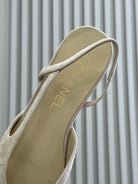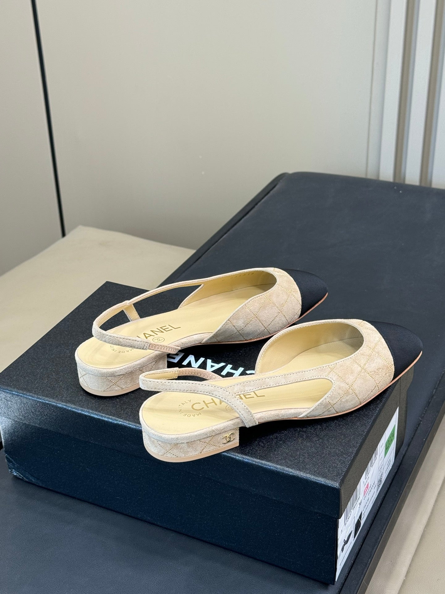 Chanel 25 Plaid Slingback Flat Beige Black Suede Sheepskin 468362