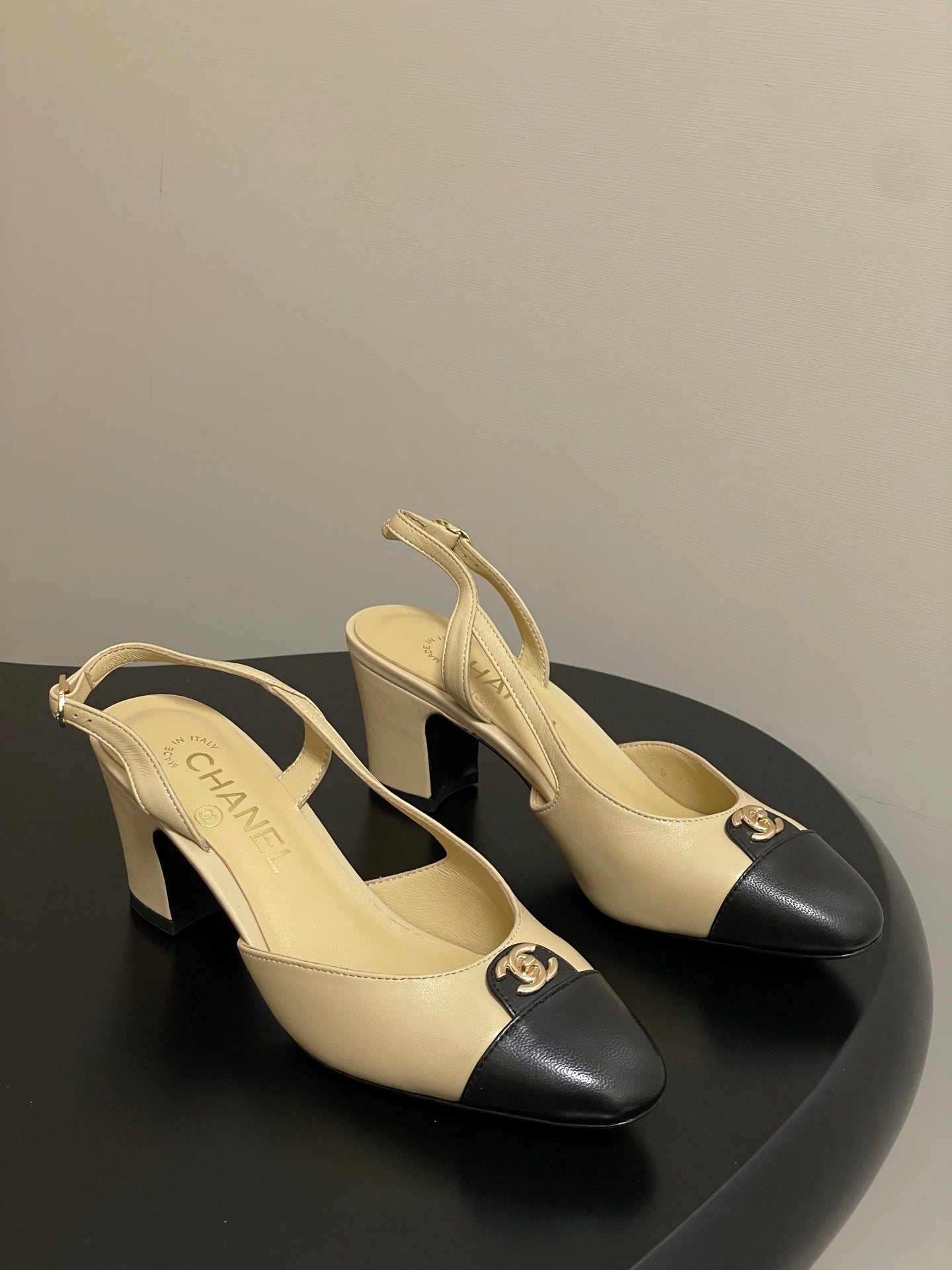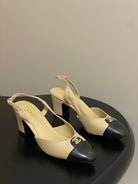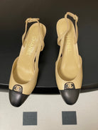 Chanel 25 Slingback 50mm Beige Black Lambskin 473216