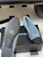 Chanel 25A Ballet Flats Big Chain Double C Blue Denim Sheepskin 393817
