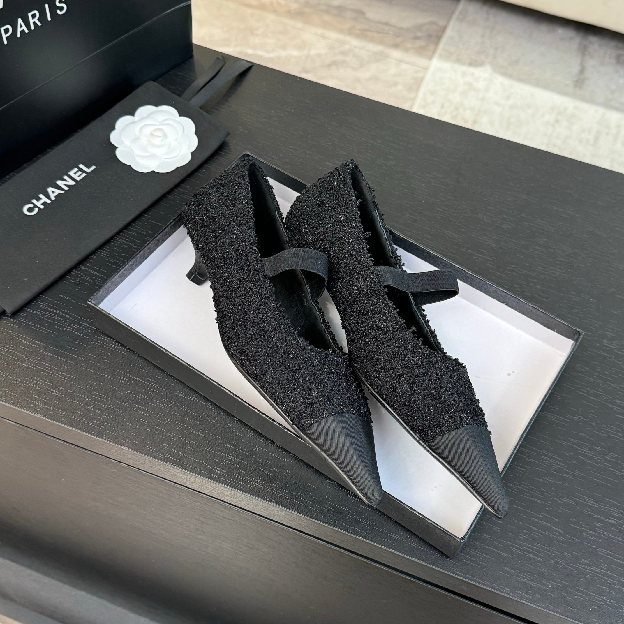 mary jane 35 pointed toe black tweed black grosgrain