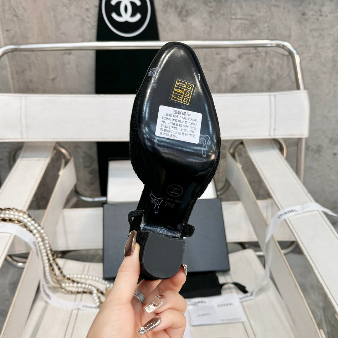 slingbacks 95 black tweed black patent calfskin