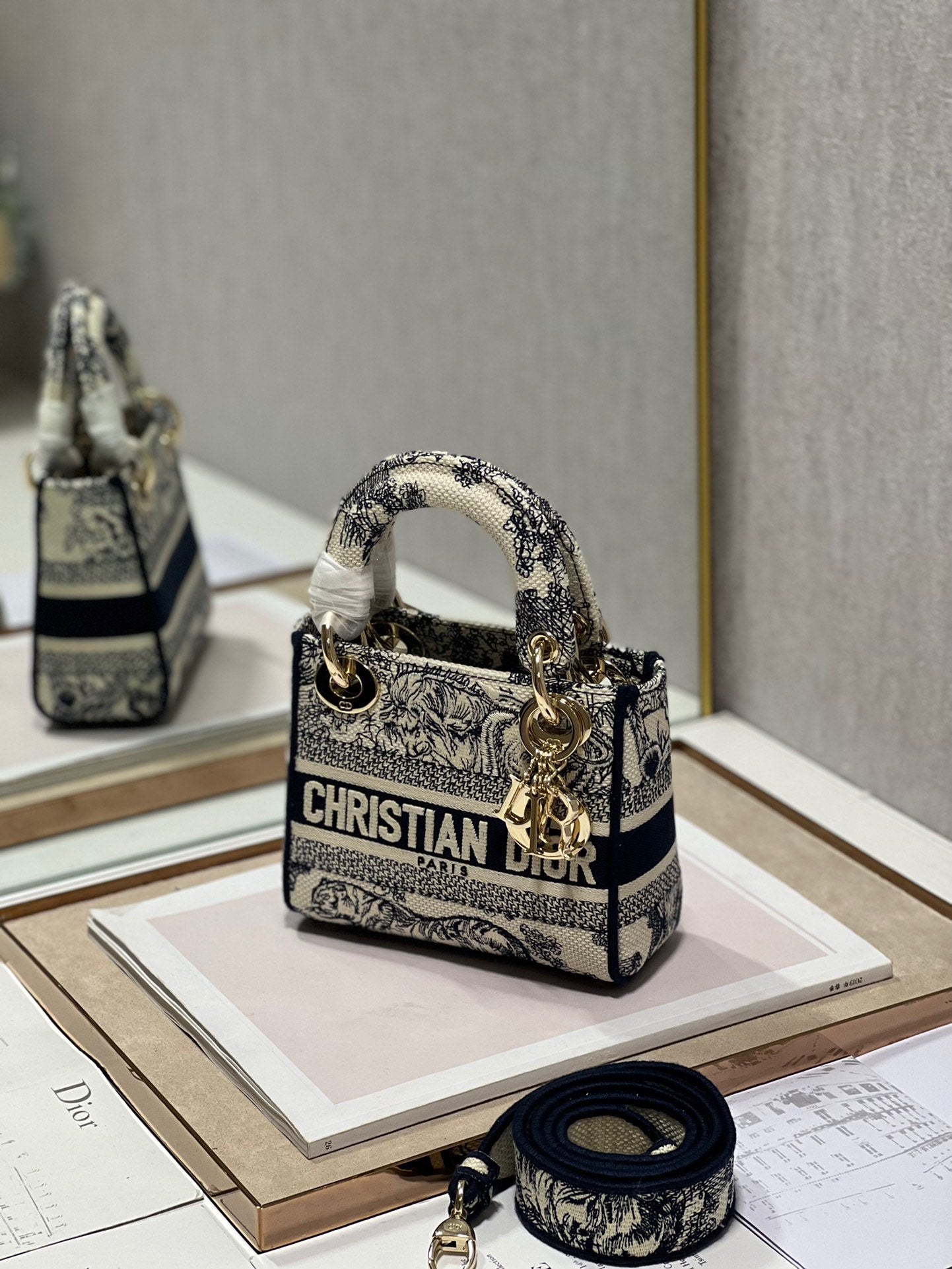 CD Old Blue Tiger 17 Lady Dior Bag Canvas 336742