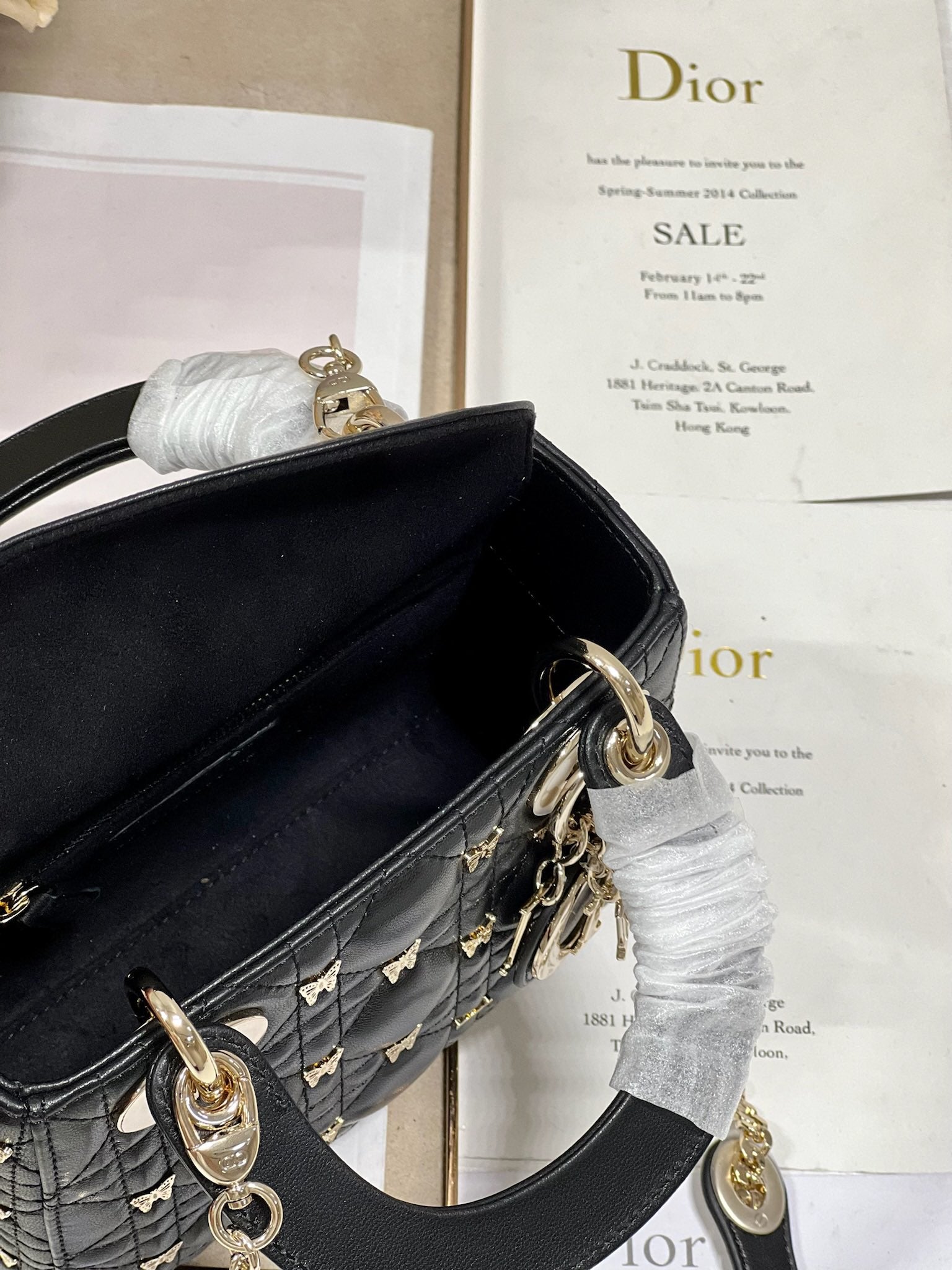 MINI LADY 17 BUTTERFLY STUD BLACK LAMBSKIN