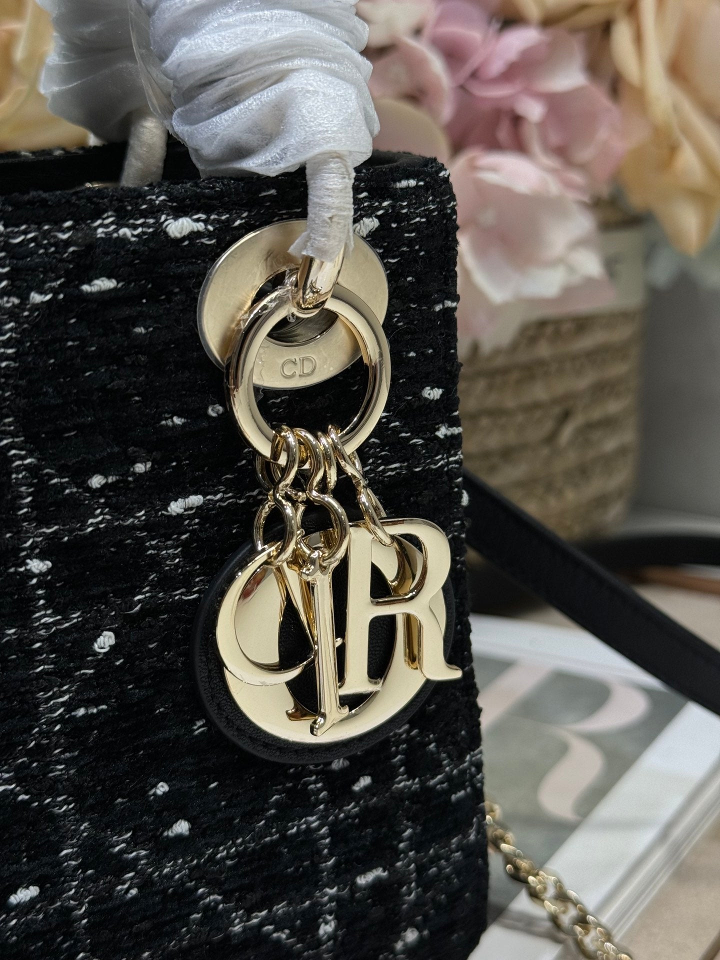 CD Lady 17cm Black Lambskin Black White Canvas