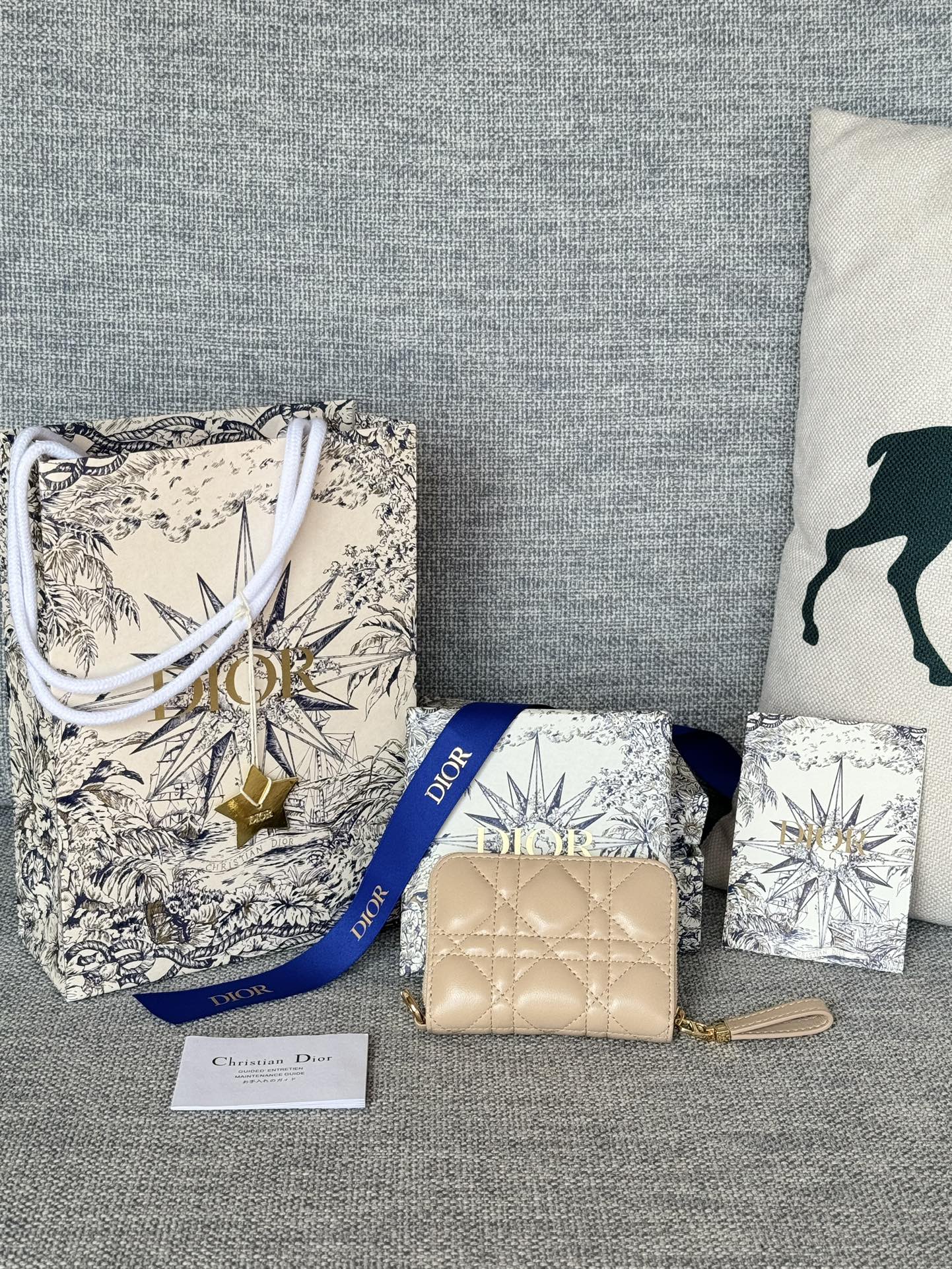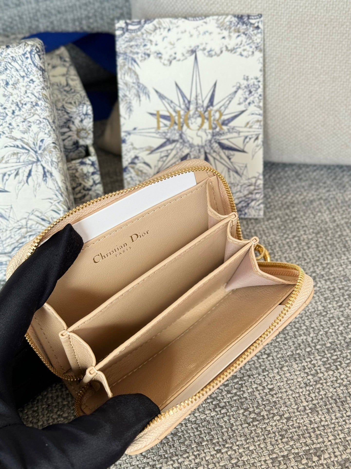 CD Logo Caro 11cm Compact Wallet Beige Calfskin