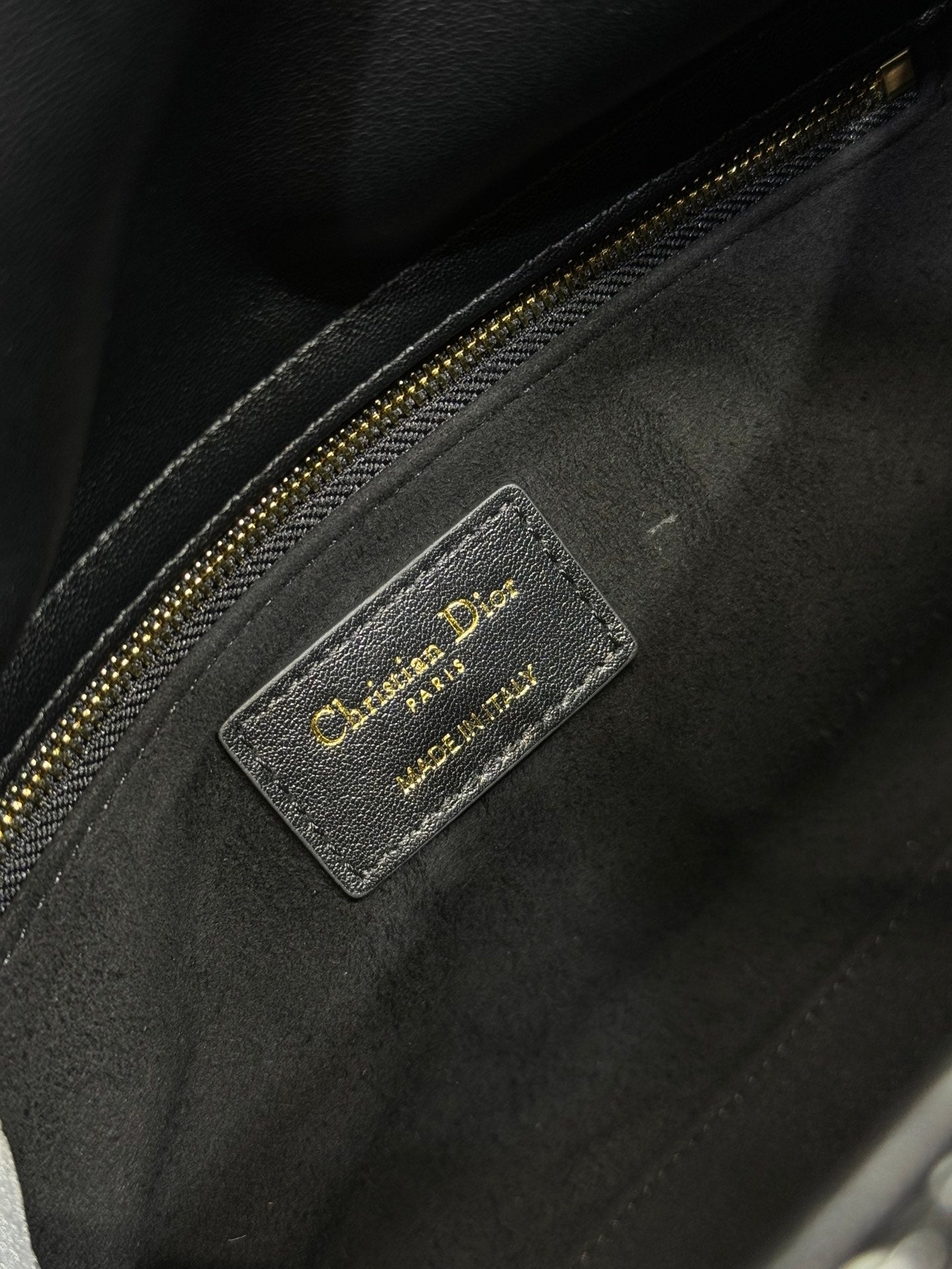 CD Medium Lady 24 Black Lambskin Black White Canvas